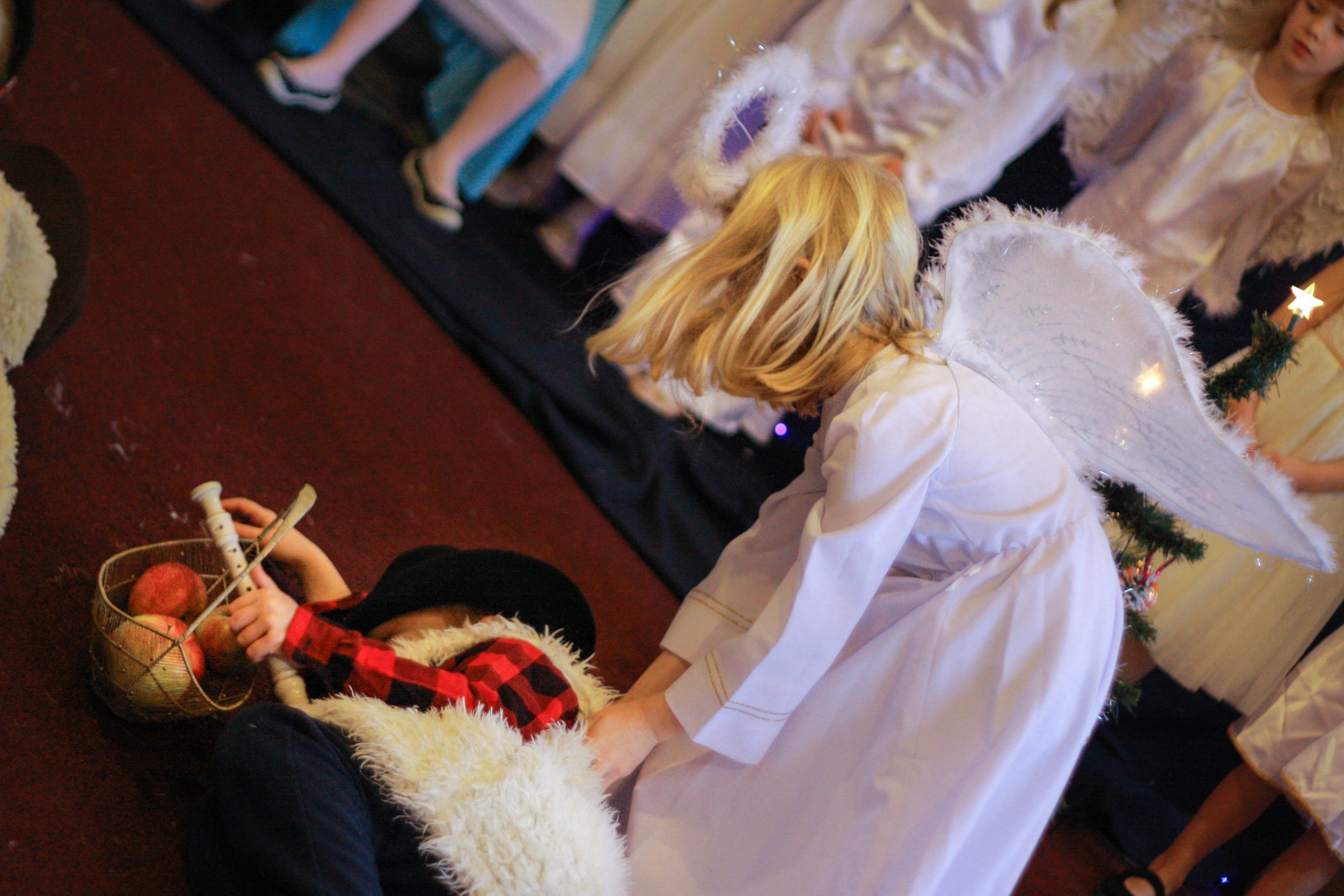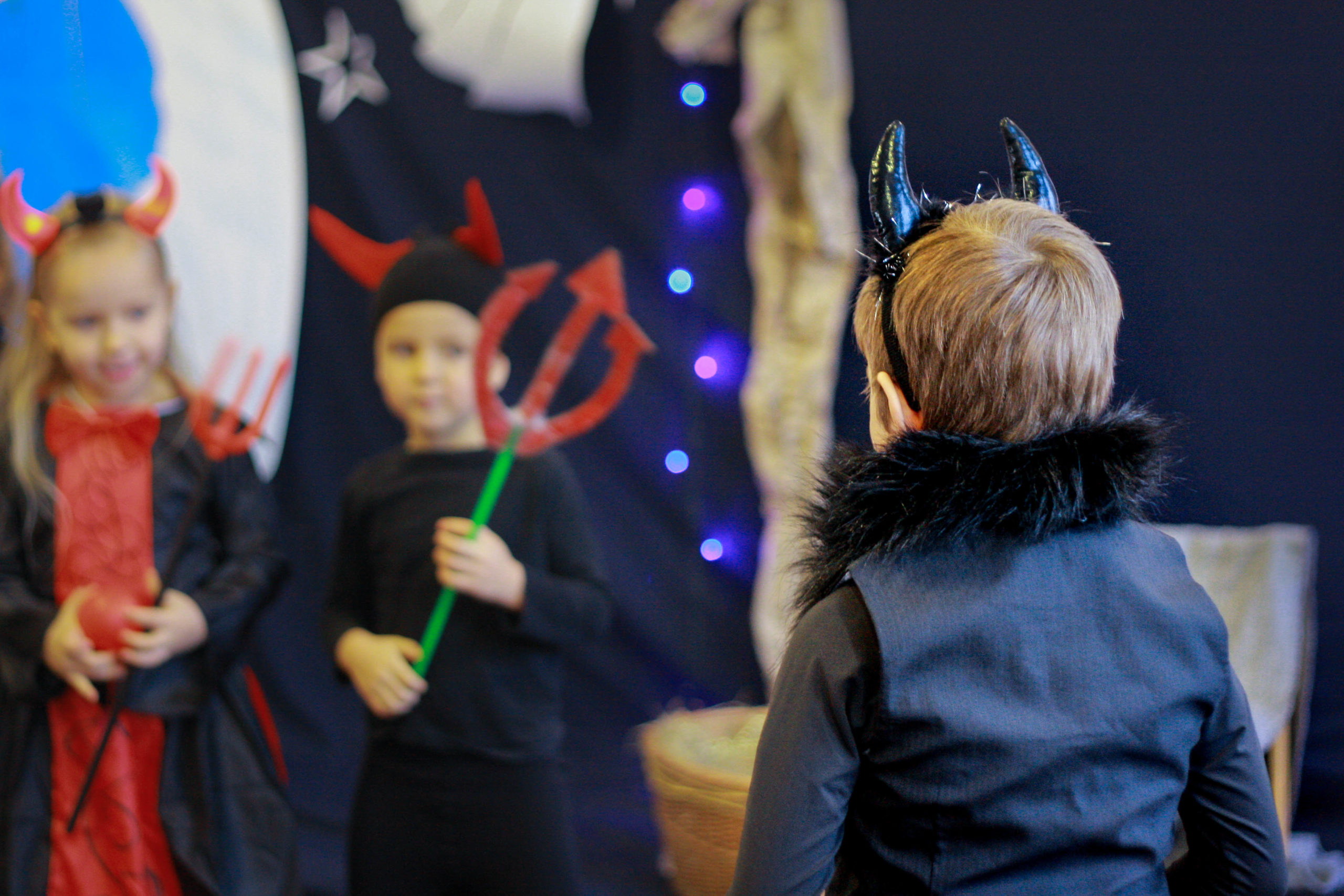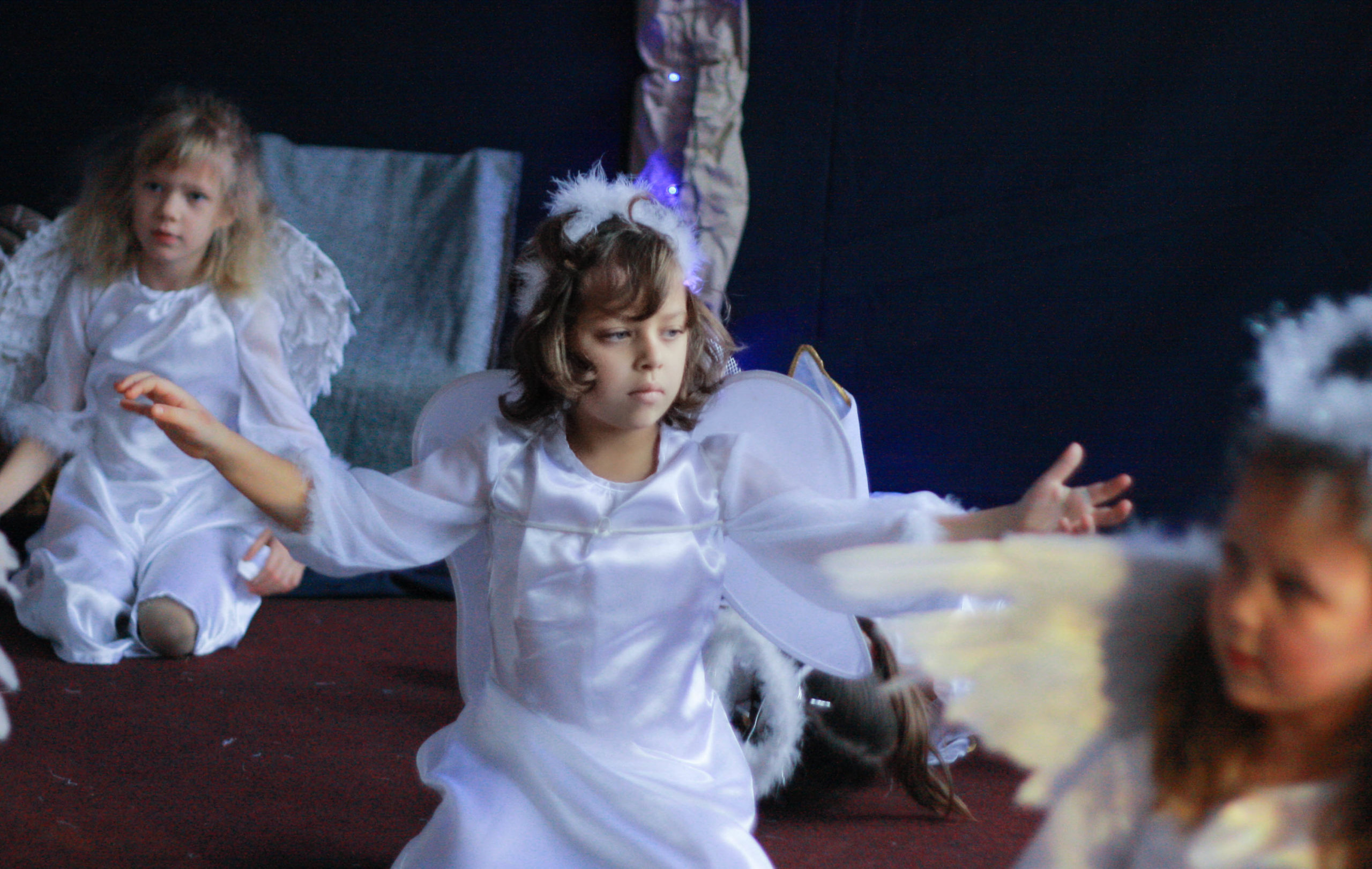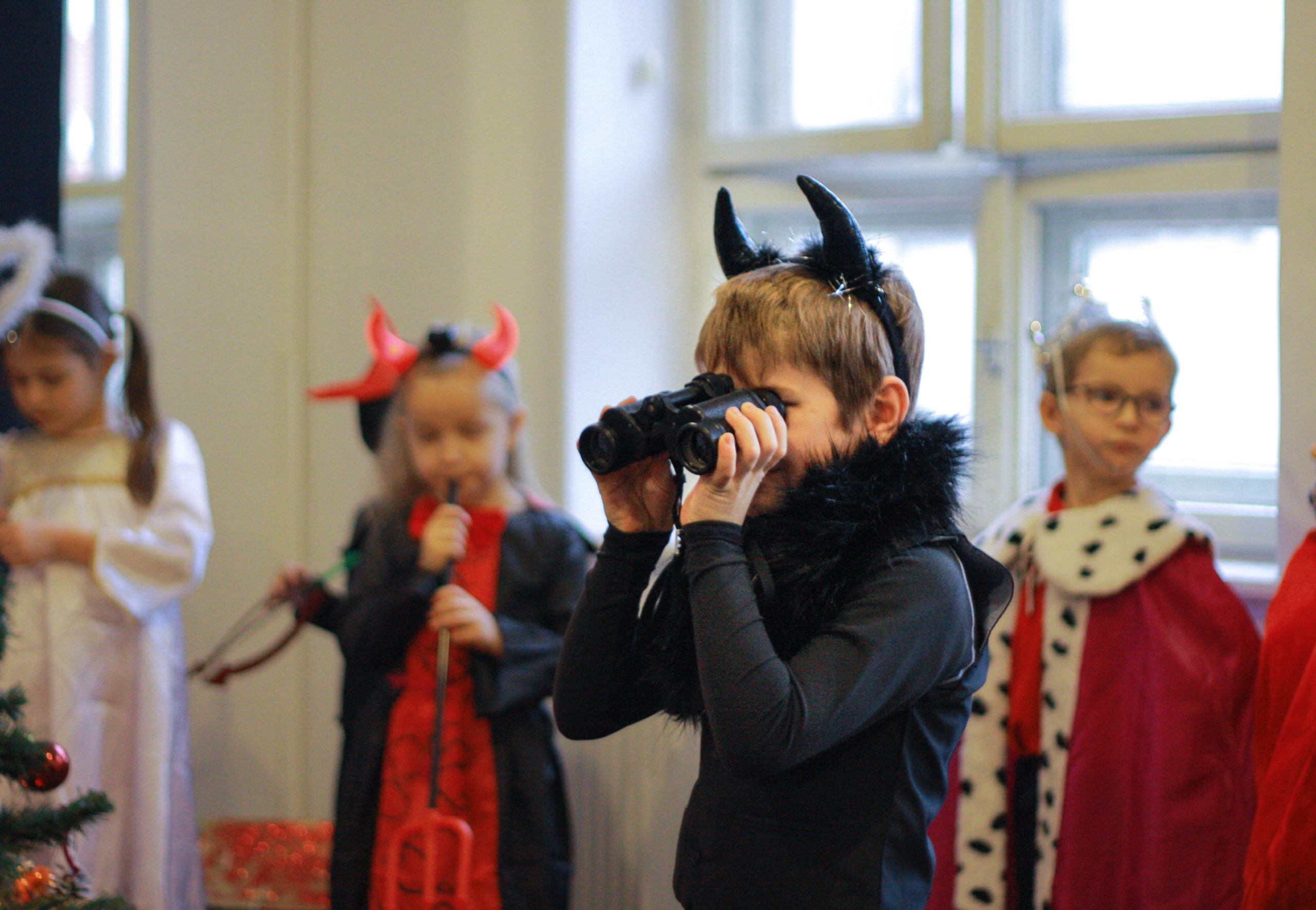 Kostiumy były wspaniałe, aktorzy przejęci, choć wymęczeni próbą generalną, niektórzy nawet (wiem to na pewno, mówili mi na ucho) musieli zmierzyć się z przedobiednim głodem, Panie reżyserki zaangażowane i pomocne. Szczególnie wzruszający był taniec aniołów przy akompaniamencie piosenki „Mary, Did You Know?”. Rozbiegane diabły, podróżujący Maryja i Józef, śpiący pastuszkowie, wspaniały Archanioł Gabriel i błądzący królowie – było wszystko! Muszę też wyróżnić rolę szarej, przepraszam… czarnej eminencji całego zamieszania, a zresztą obejrzyjcie sami.