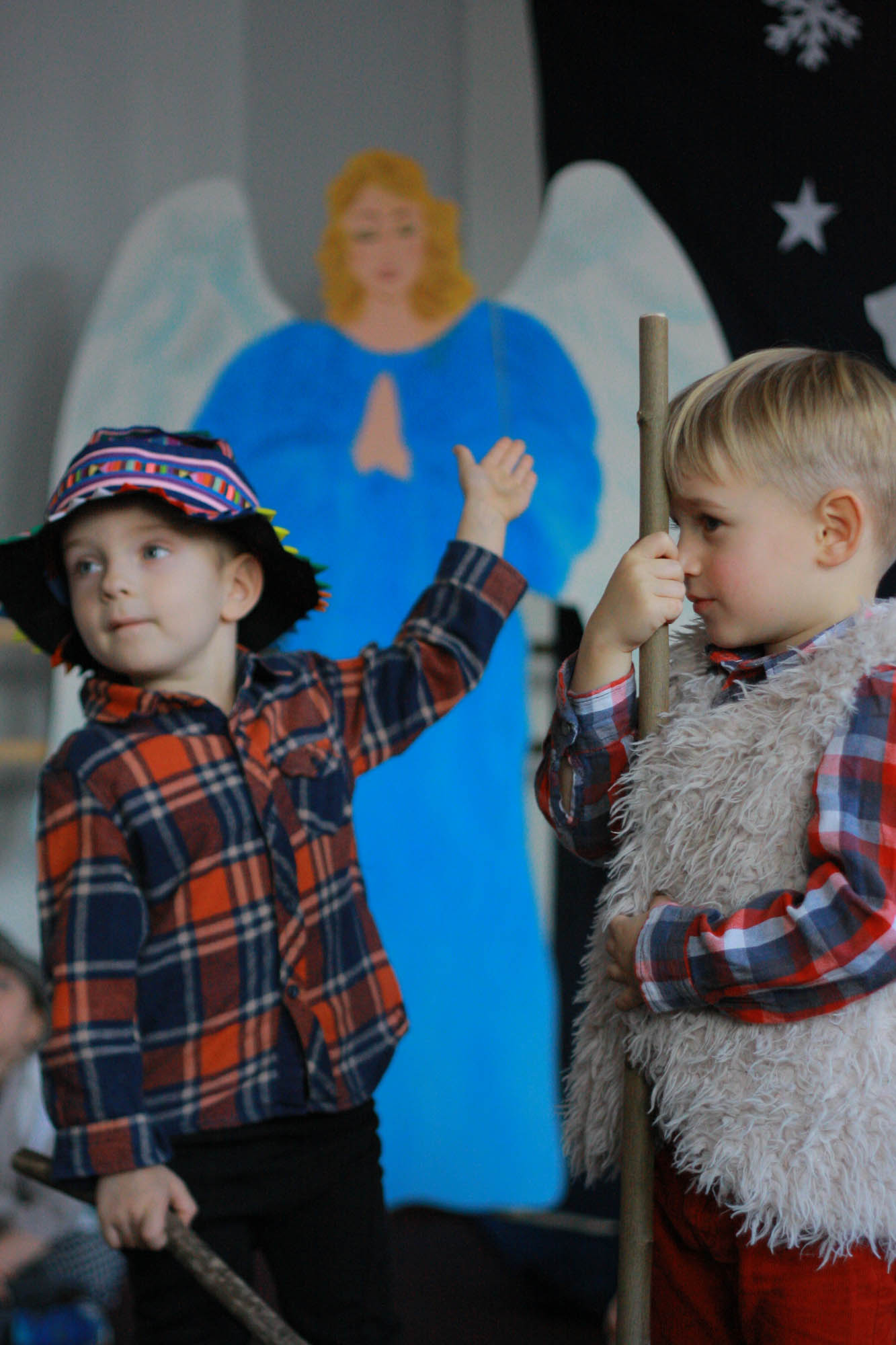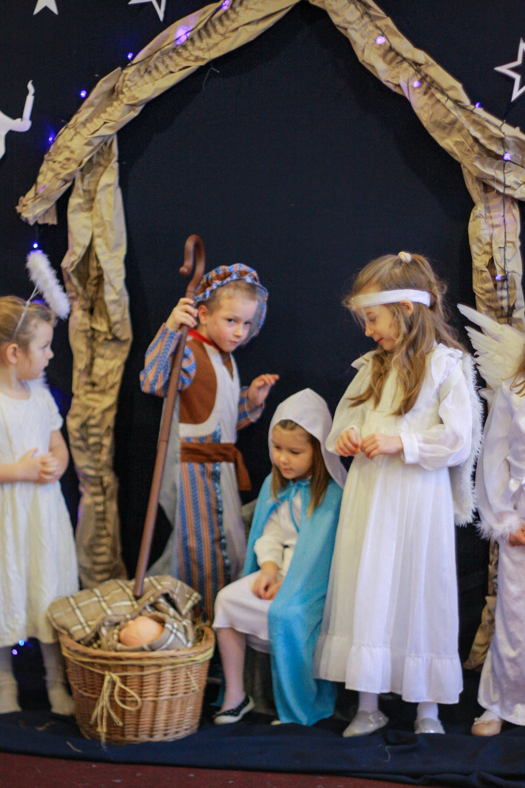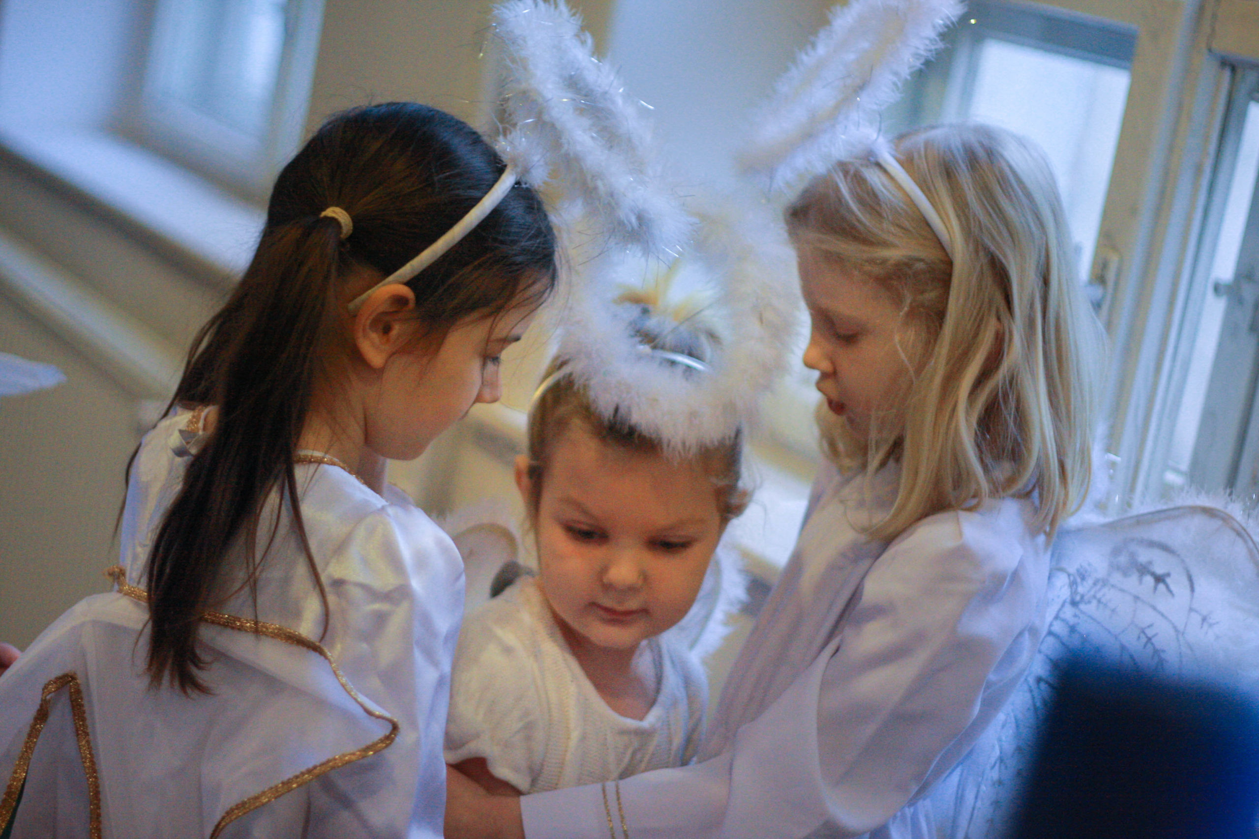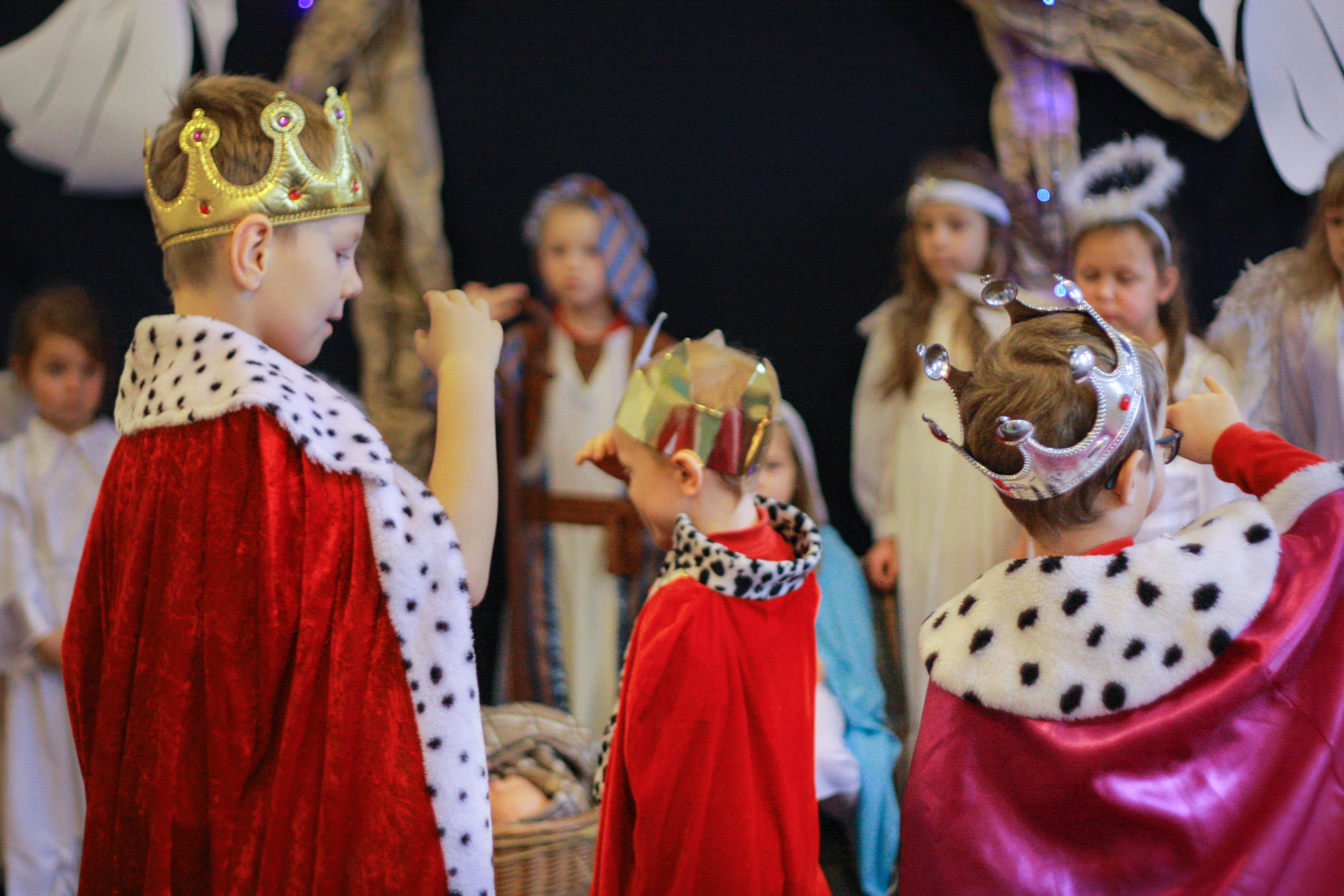 Kostiumy były wspaniałe, aktorzy przejęci, choć wymęczeni próbą generalną, niektórzy nawet (wiem to na pewno, mówili mi na ucho) musieli zmierzyć się z przedobiednim głodem, Panie reżyserki zaangażowane i pomocne. Szczególnie wzruszający był taniec aniołów przy akompaniamencie piosenki „Mary, Did You Know?”. Rozbiegane diabły, podróżujący Maryja i Józef, śpiący pastuszkowie, wspaniały Archanioł Gabriel i błądzący królowie – było wszystko! Muszę też wyróżnić rolę szarej, przepraszam… czarnej eminencji całego zamieszania, a zresztą obejrzyjcie sami.