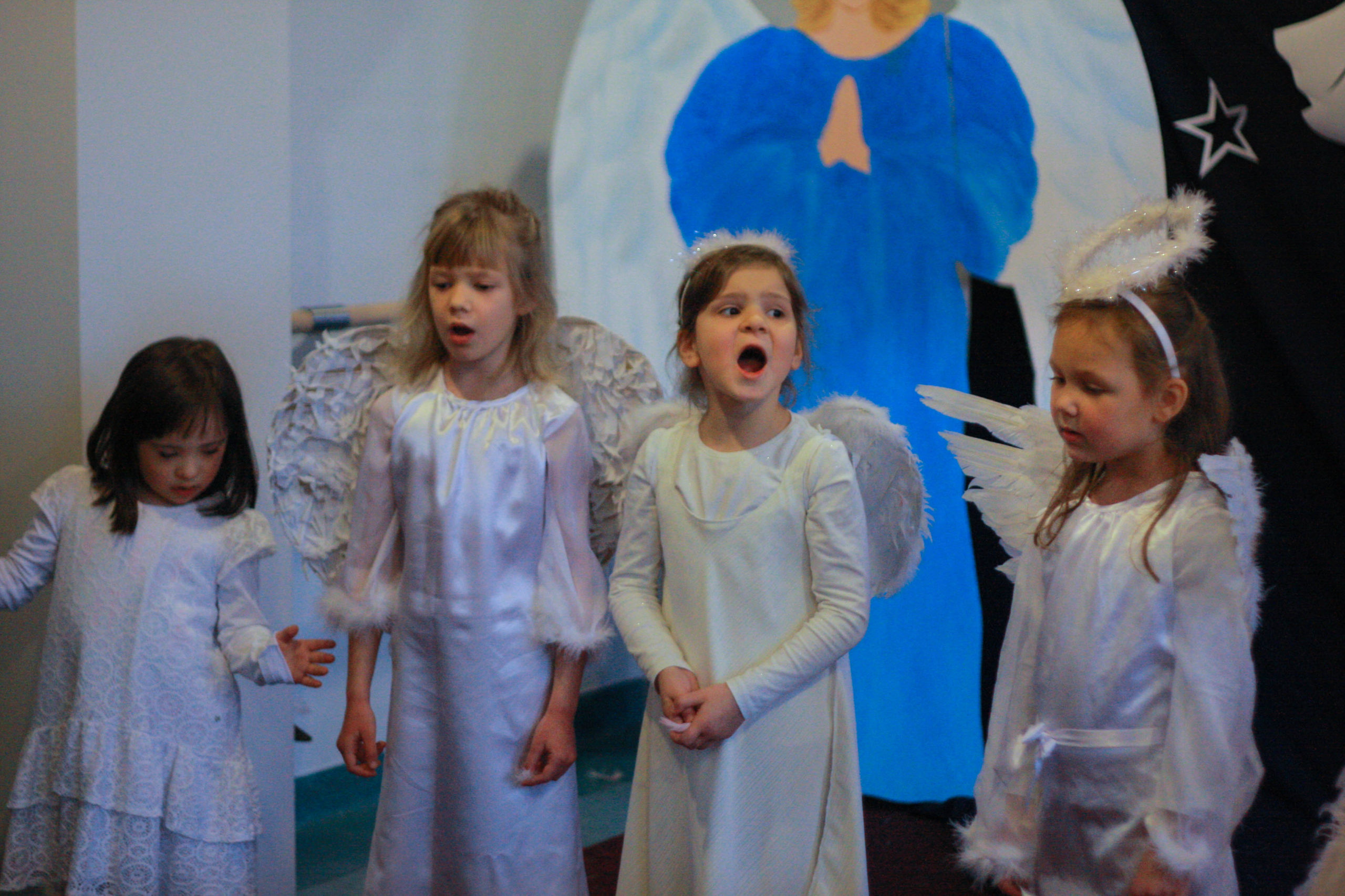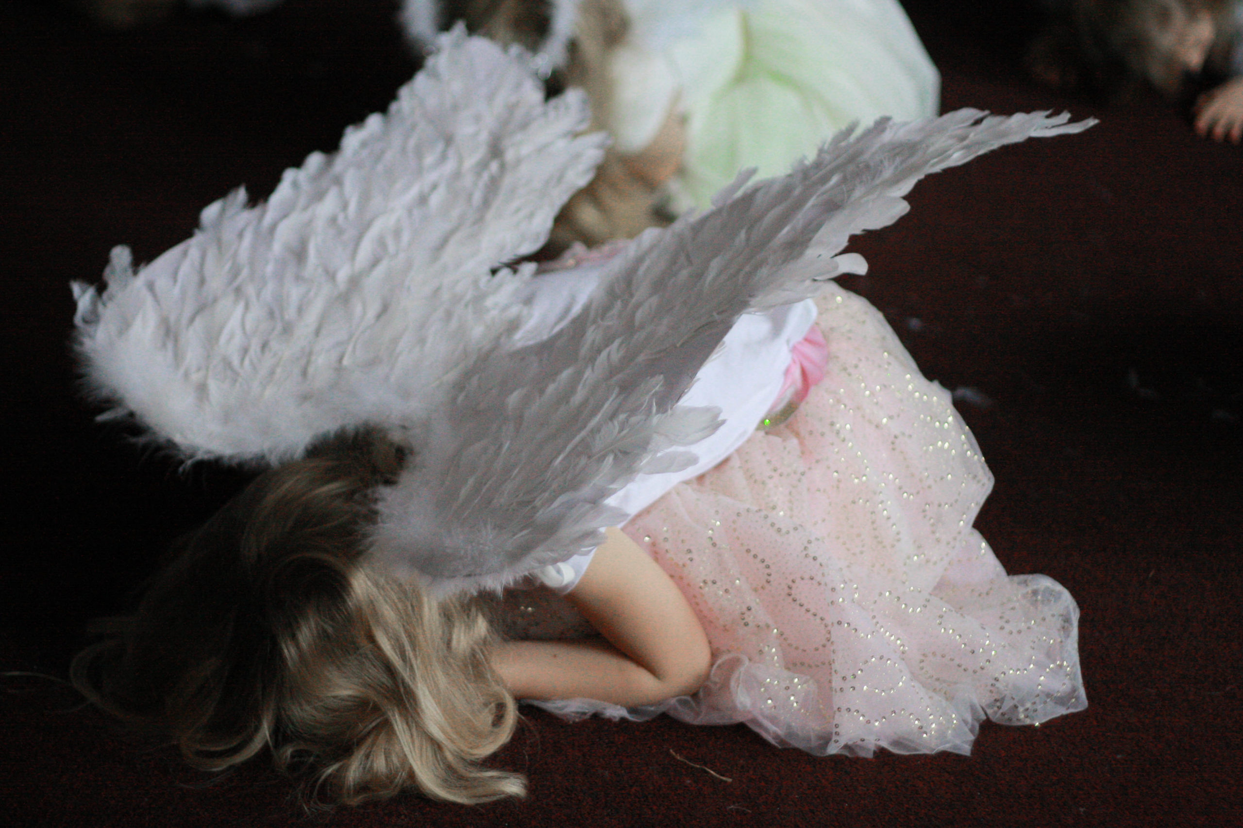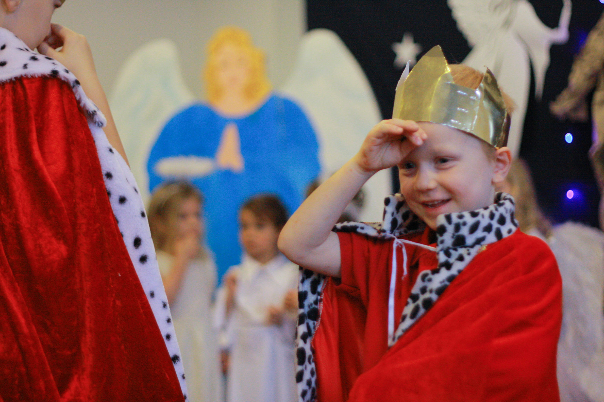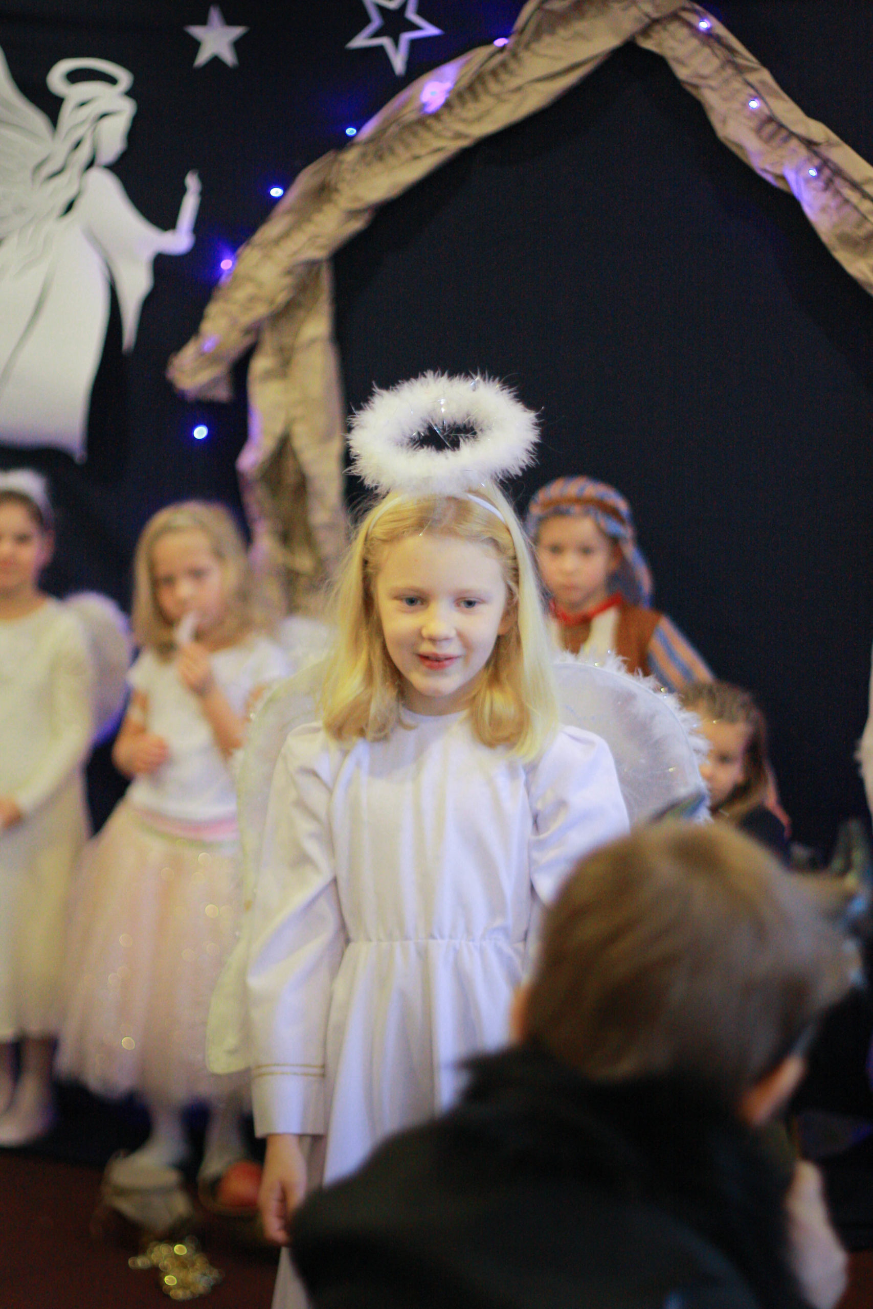 Kostiumy były wspaniałe, aktorzy przejęci, choć wymęczeni próbą generalną, niektórzy nawet (wiem to na pewno, mówili mi na ucho) musieli zmierzyć się z przedobiednim głodem, Panie reżyserki zaangażowane i pomocne. Szczególnie wzruszający był taniec aniołów przy akompaniamencie piosenki „Mary, Did You Know?”. Rozbiegane diabły, podróżujący Maryja i Józef, śpiący pastuszkowie, wspaniały Archanioł Gabriel i błądzący królowie – było wszystko! Muszę też wyróżnić rolę szarej, przepraszam… czarnej eminencji całego zamieszania, a zresztą obejrzyjcie sami.