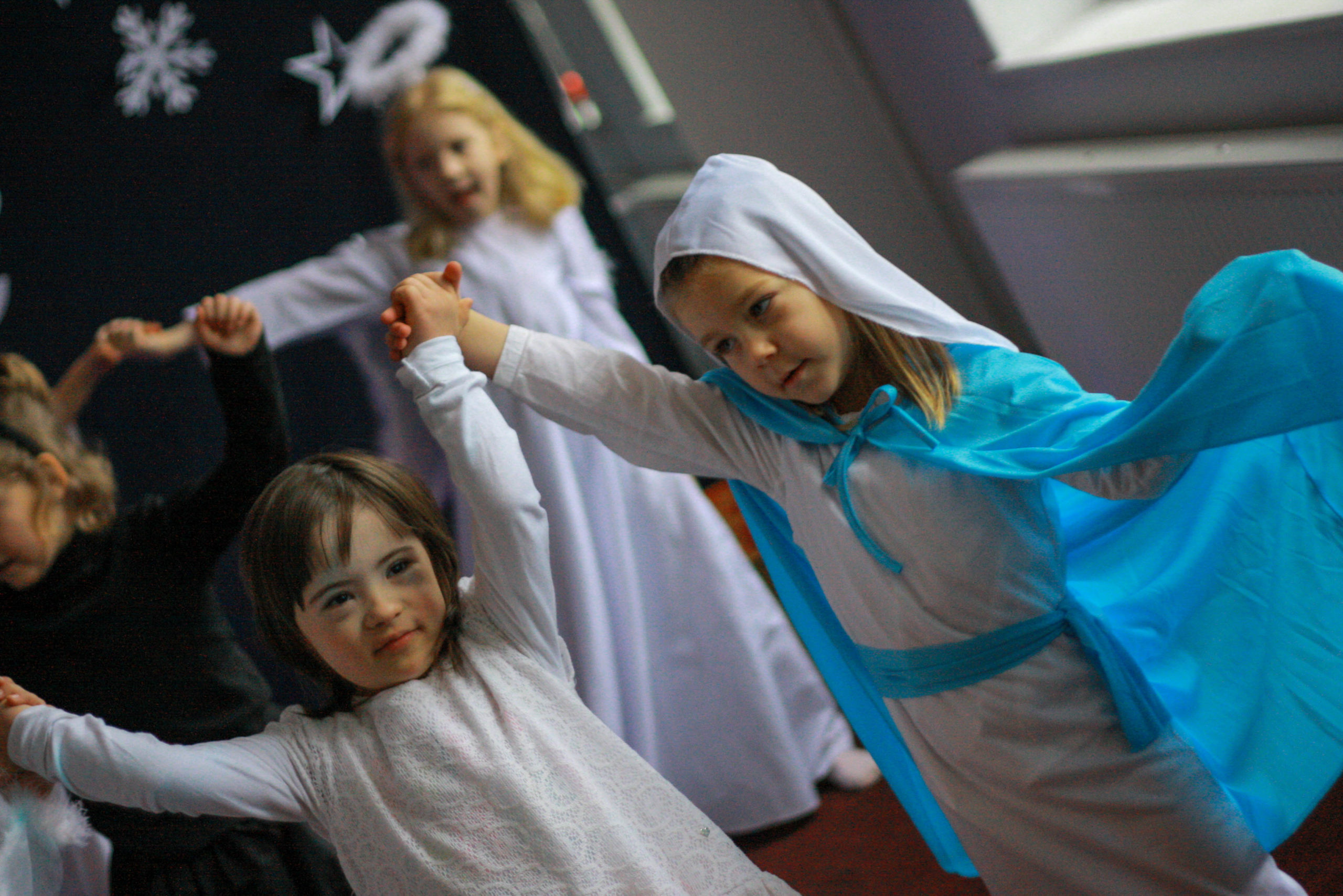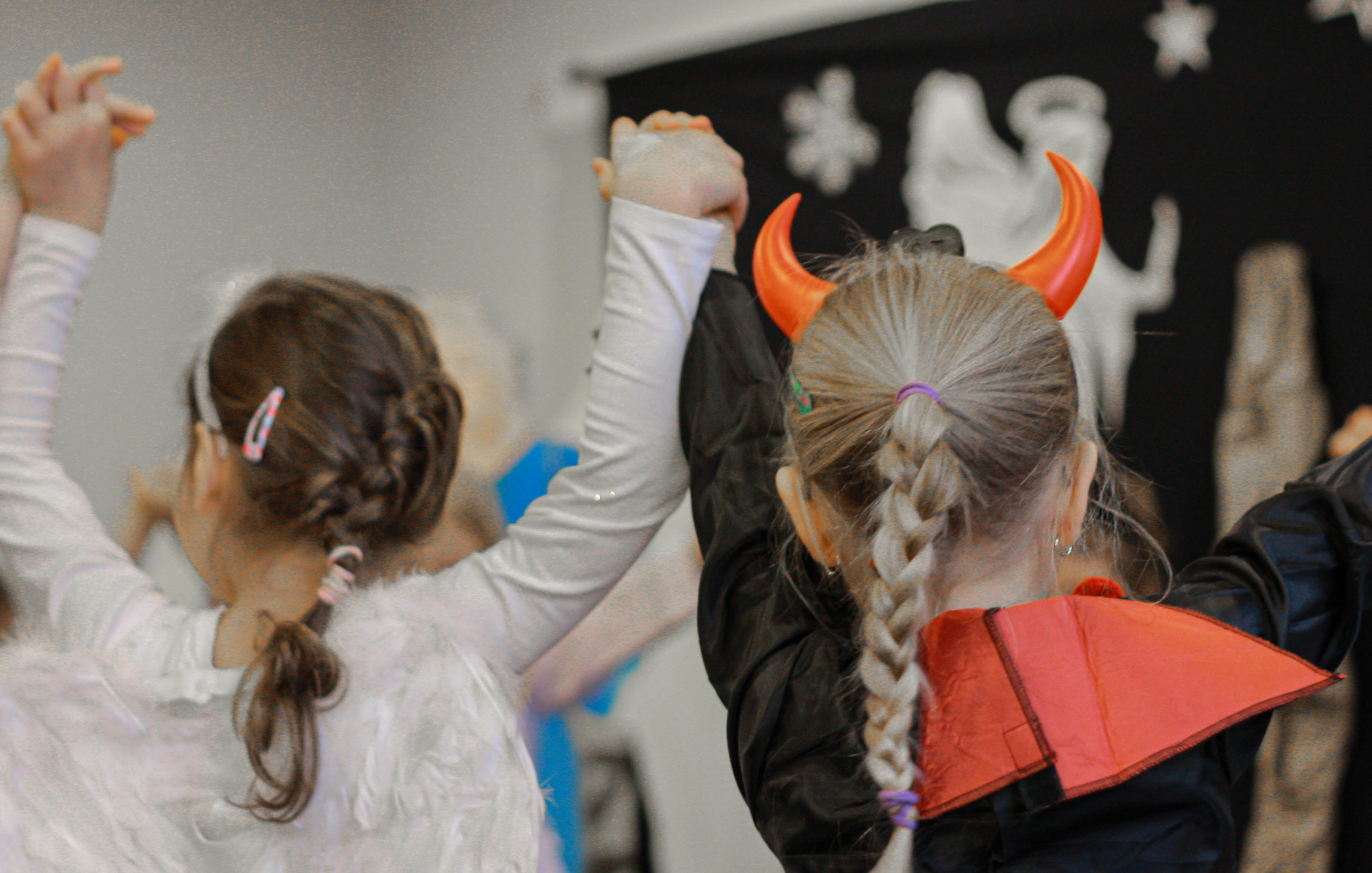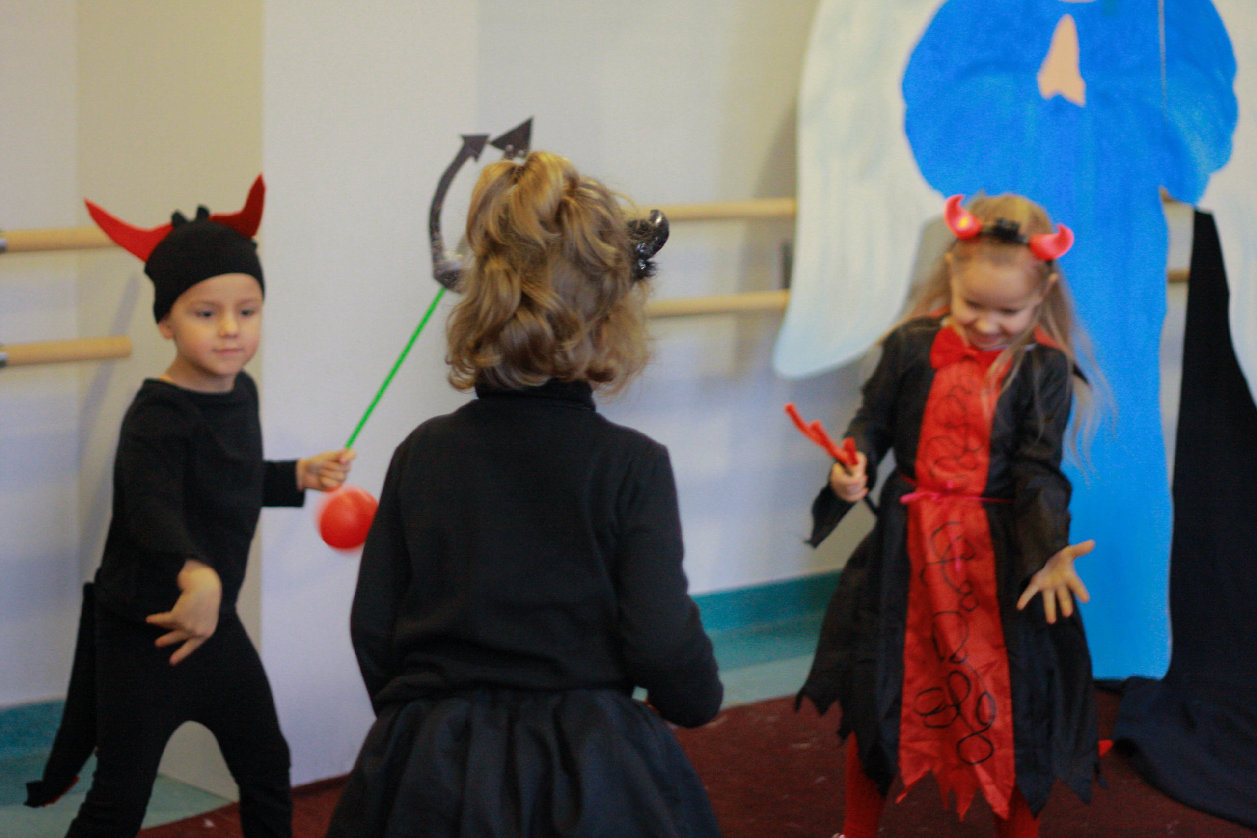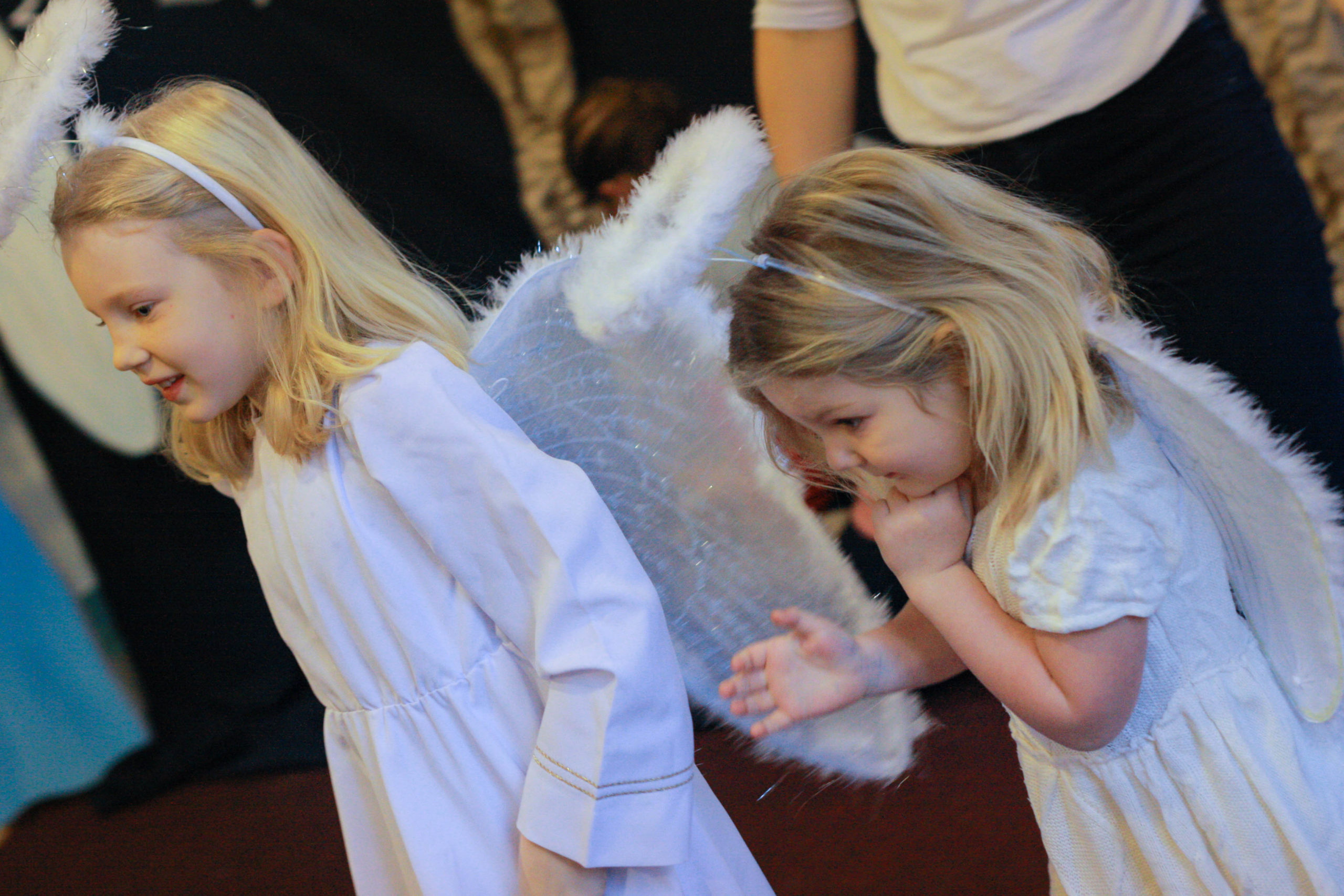 Kostiumy były wspaniałe, aktorzy przejęci, choć wymęczeni próbą generalną, niektórzy nawet (wiem to na pewno, mówili mi na ucho) musieli zmierzyć się z przedobiednim głodem, Panie reżyserki zaangażowane i pomocne. Szczególnie wzruszający był taniec aniołów przy akompaniamencie piosenki „Mary, Did You Know?”. Rozbiegane diabły, podróżujący Maryja i Józef, śpiący pastuszkowie, wspaniały Archanioł Gabriel i błądzący królowie – było wszystko! Muszę też wyróżnić rolę szarej, przepraszam… czarnej eminencji całego zamieszania, a zresztą obejrzyjcie sami.