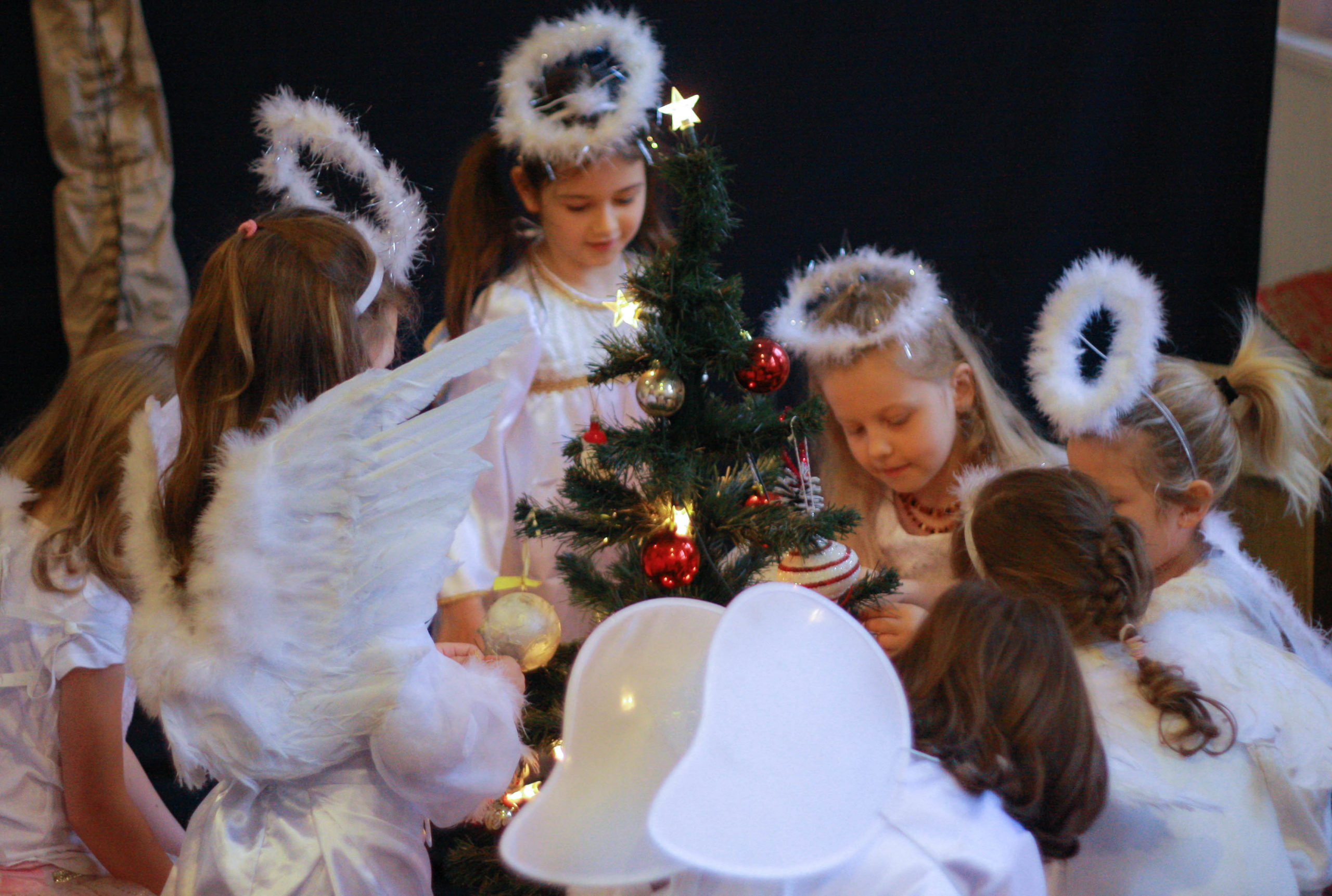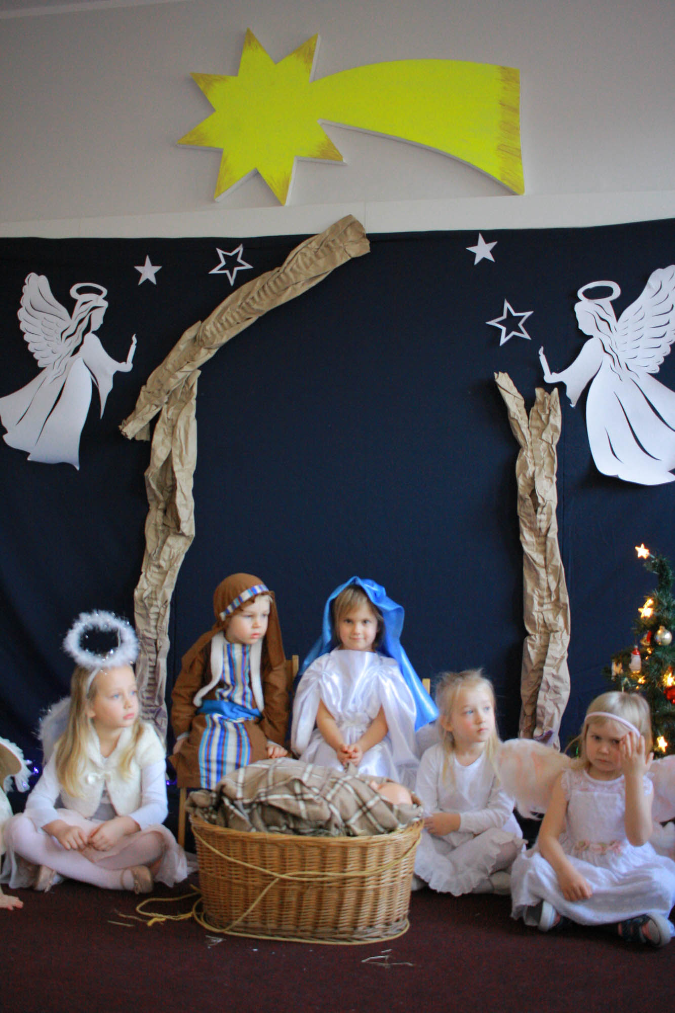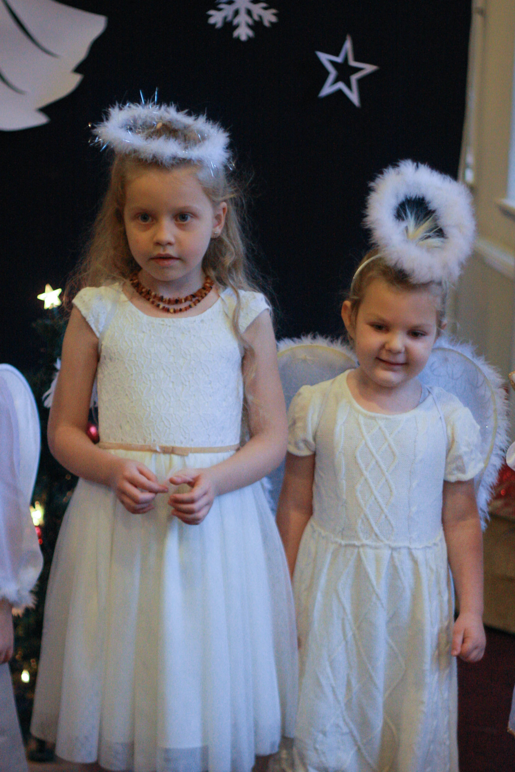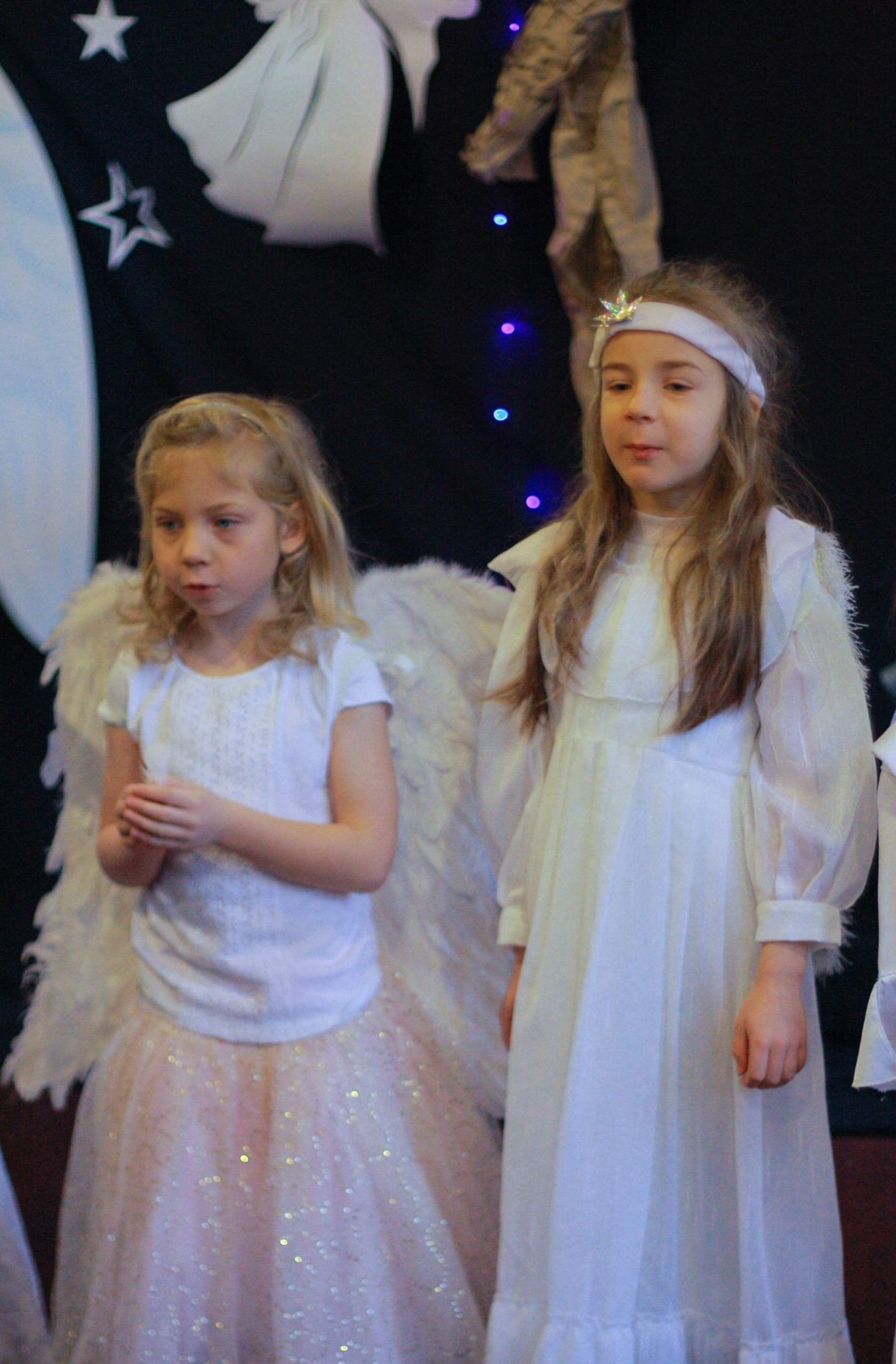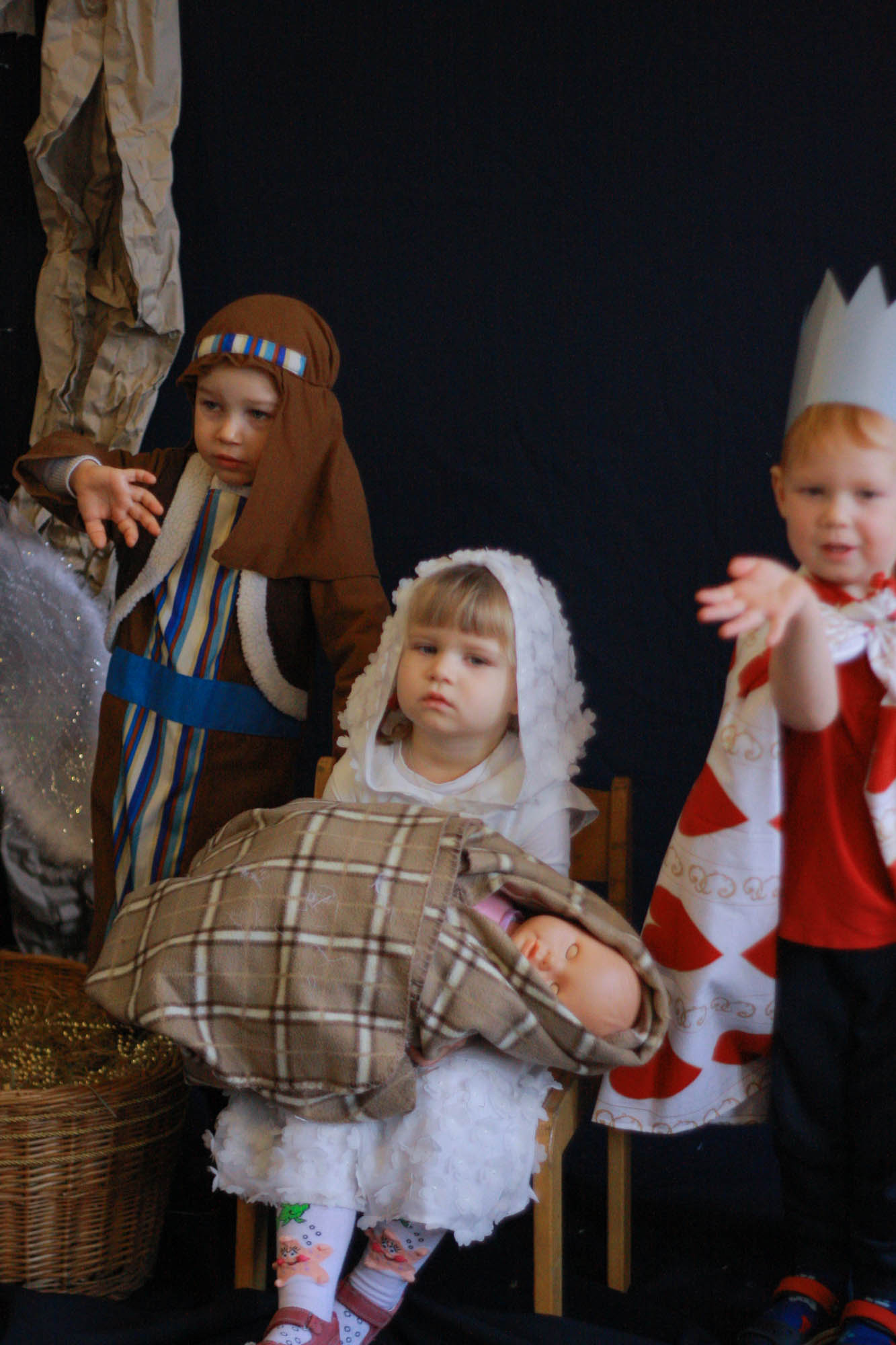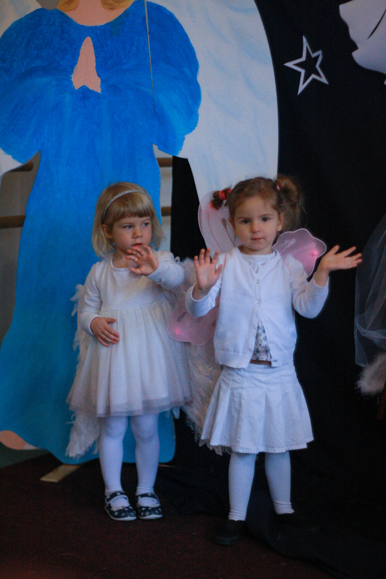 W piątek swoje pięć minut miały Muszelki. Mimo że grupa aktorów była zdziesiątkowana, przedstawienie było ujmujące. Józef i Maryja ze stoickim spokojem opiekowali się swoim małym Dzieciątkiem, najmłodszy przedstawiciel Trzech Króli (był tylko jeden, ale za to jaki!) bezbłędnie wyrecytował swoją kwestię, pastuszkowie złożyli pokłon, a chór – a właściwie chórek – anielski uświetnił to wszystko swoim śpiewem i obecnością ? Na koniec, pobrzękując janczarkami i podrygując zaśpiewały kolędę. Rozbrajające!