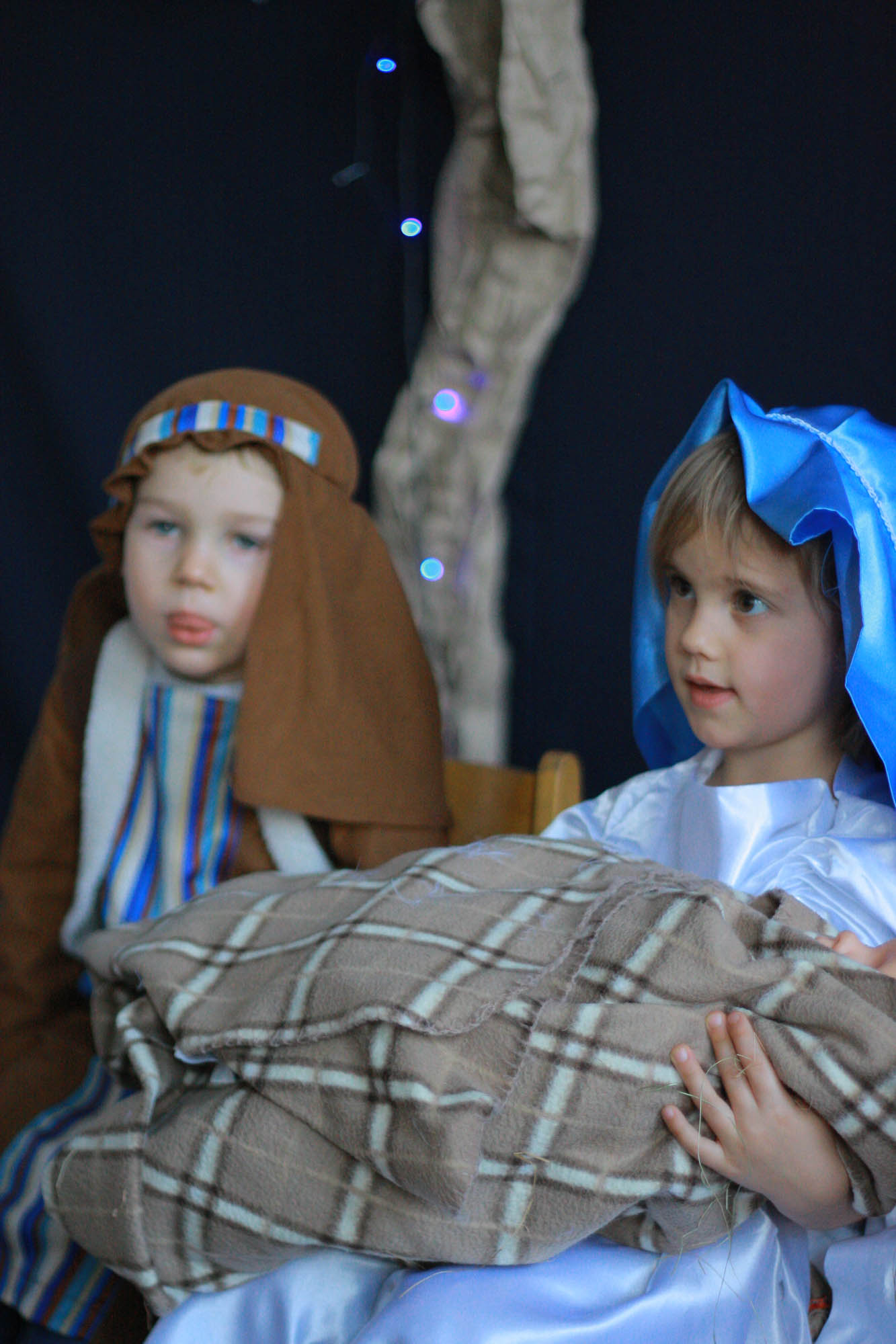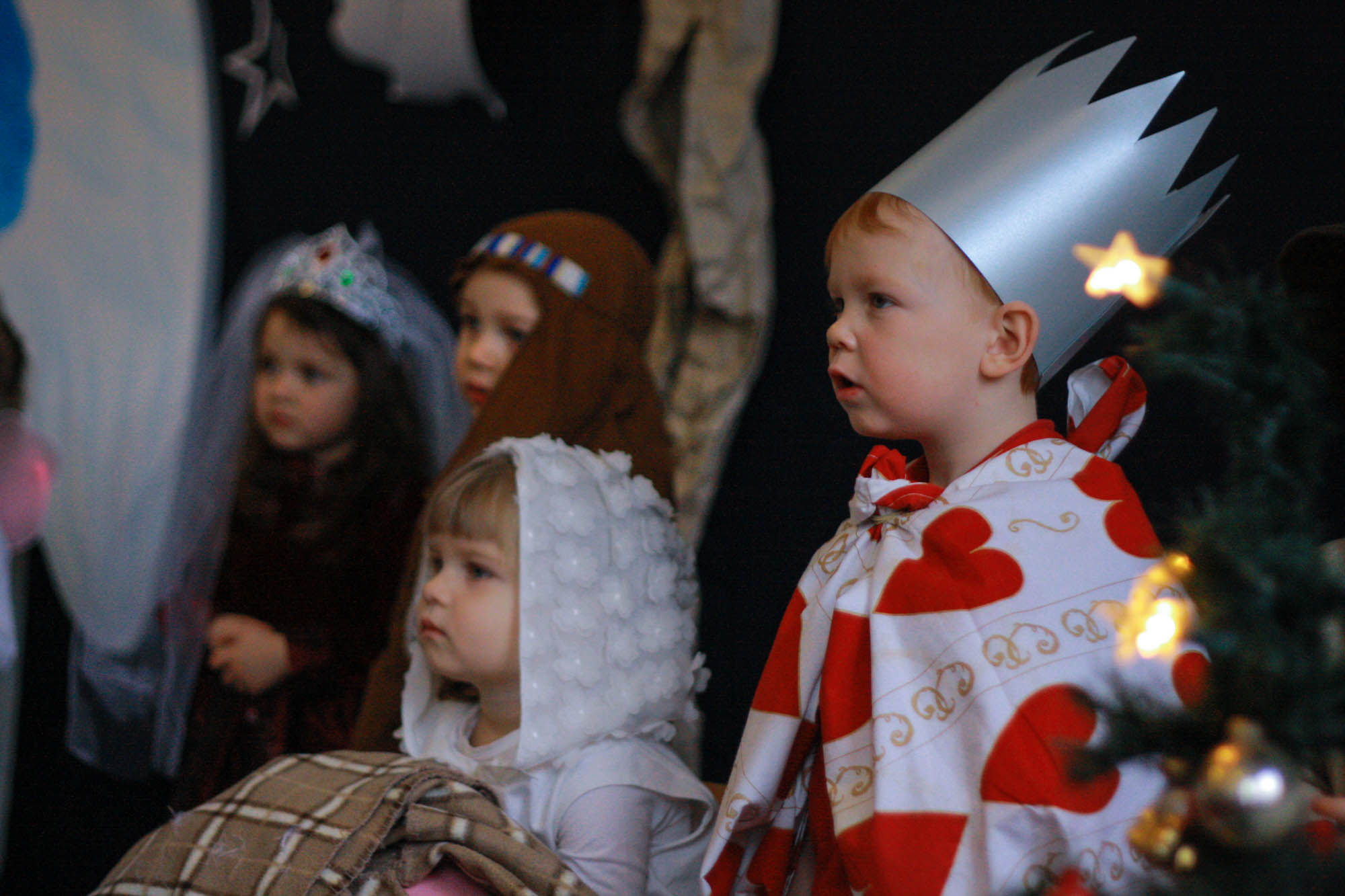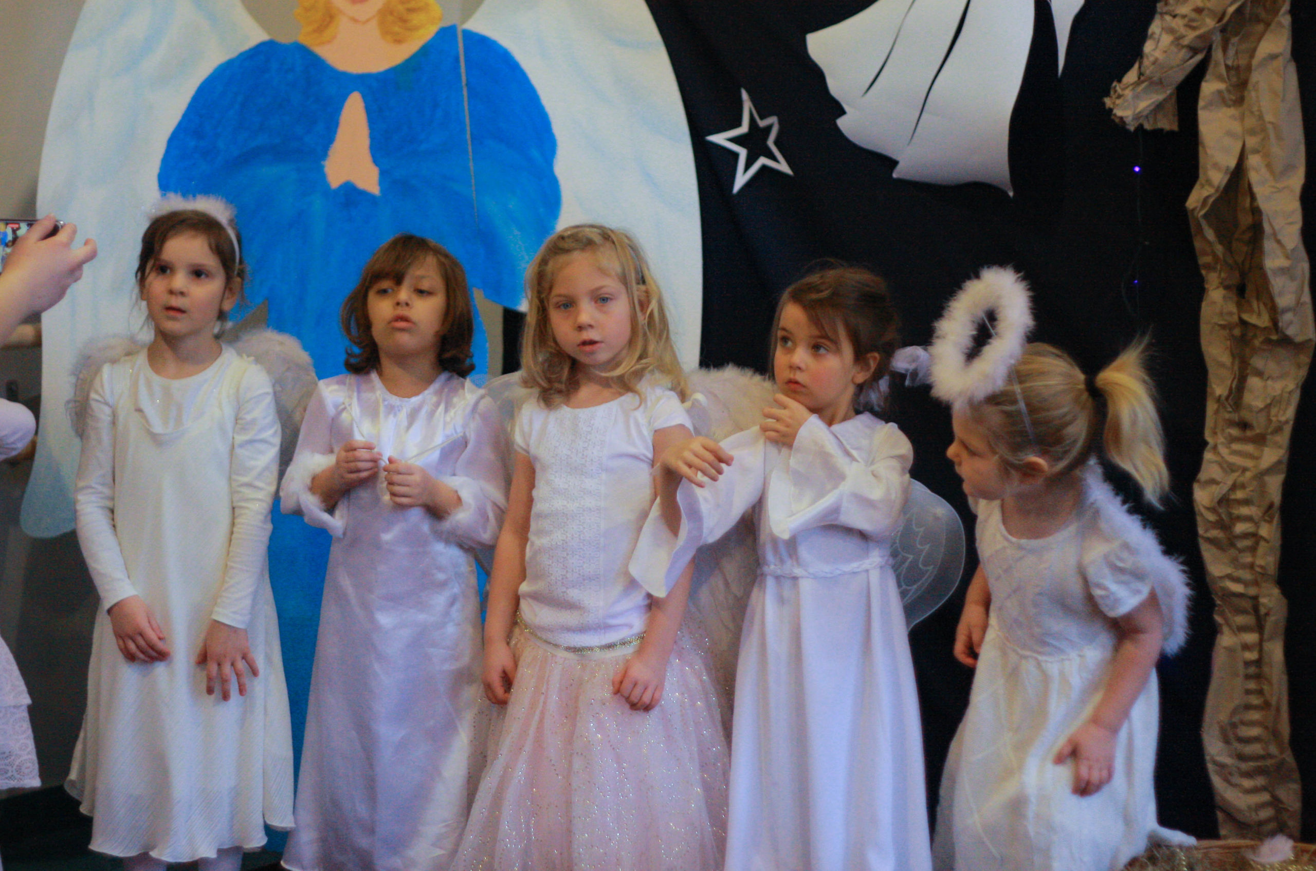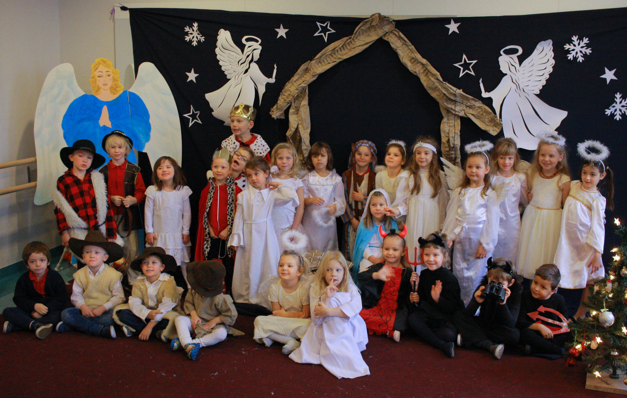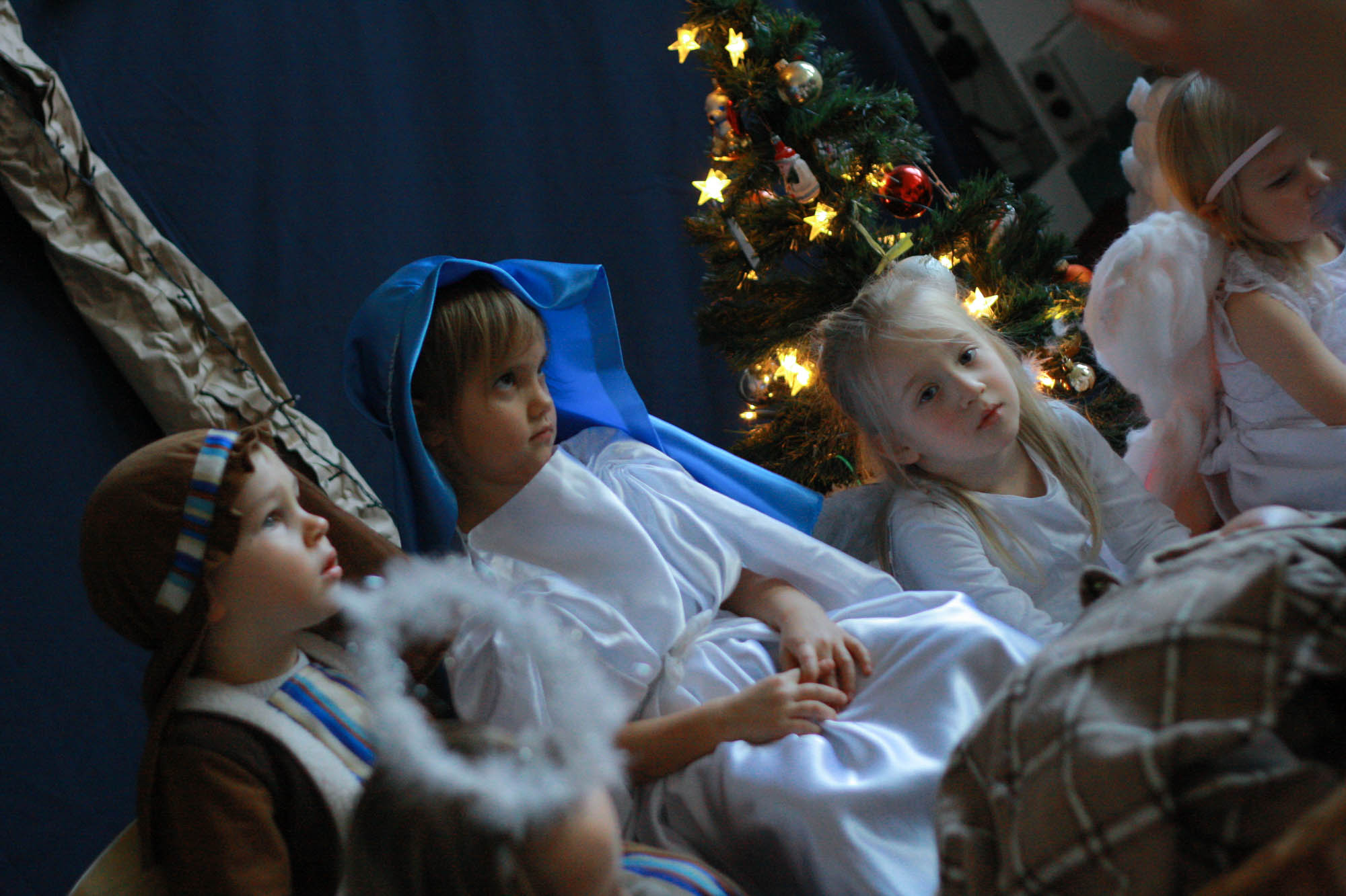 W piątek swoje pięć minut miały Muszelki. Mimo że grupa aktorów była zdziesiątkowana, przedstawienie było ujmujące. Józef i Maryja ze stoickim spokojem opiekowali się swoim małym Dzieciątkiem, najmłodszy przedstawiciel Trzech Króli (był tylko jeden, ale za to jaki!) bezbłędnie wyrecytował swoją kwestię, pastuszkowie złożyli pokłon, a chór – a właściwie chórek – anielski uświetnił to wszystko swoim śpiewem i obecnością ? Na koniec, pobrzękując janczarkami i podrygując zaśpiewały kolędę. Rozbrajające!