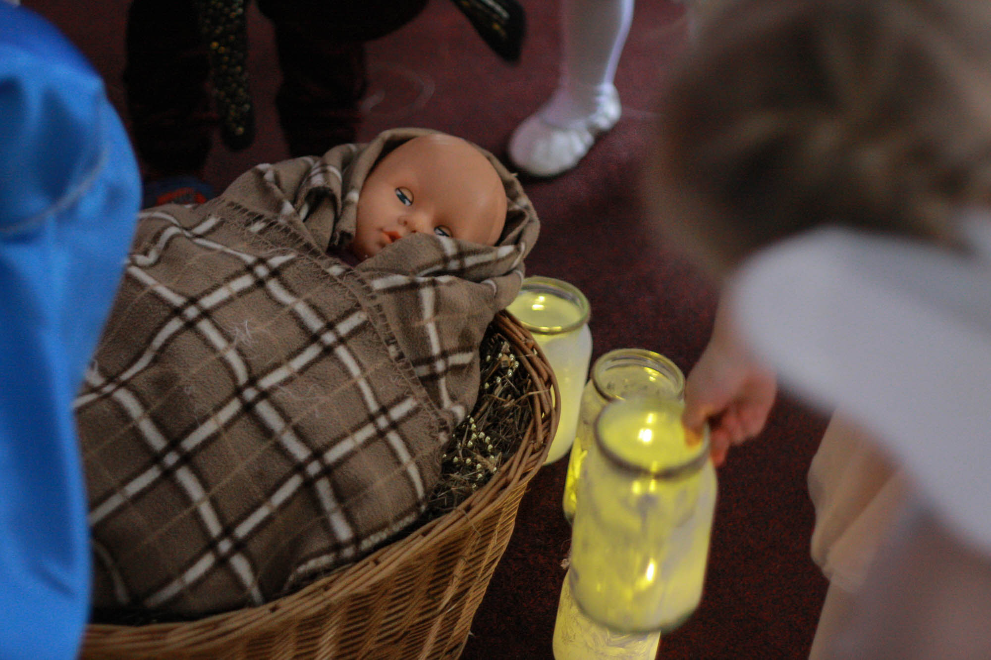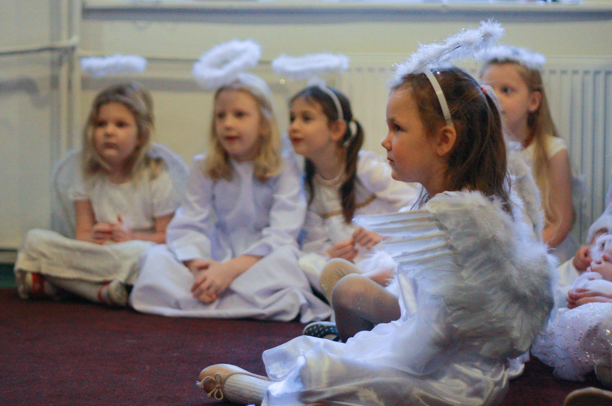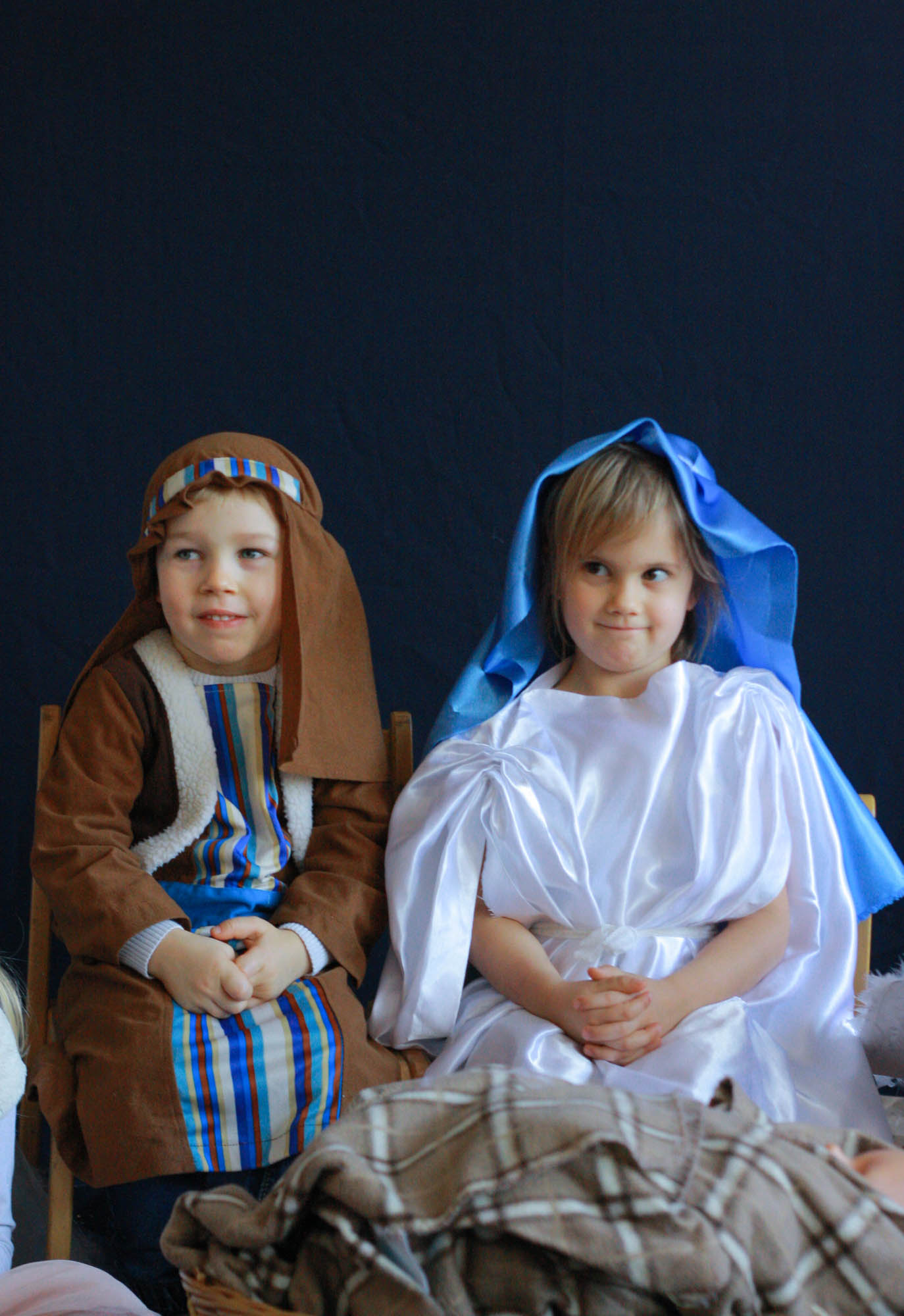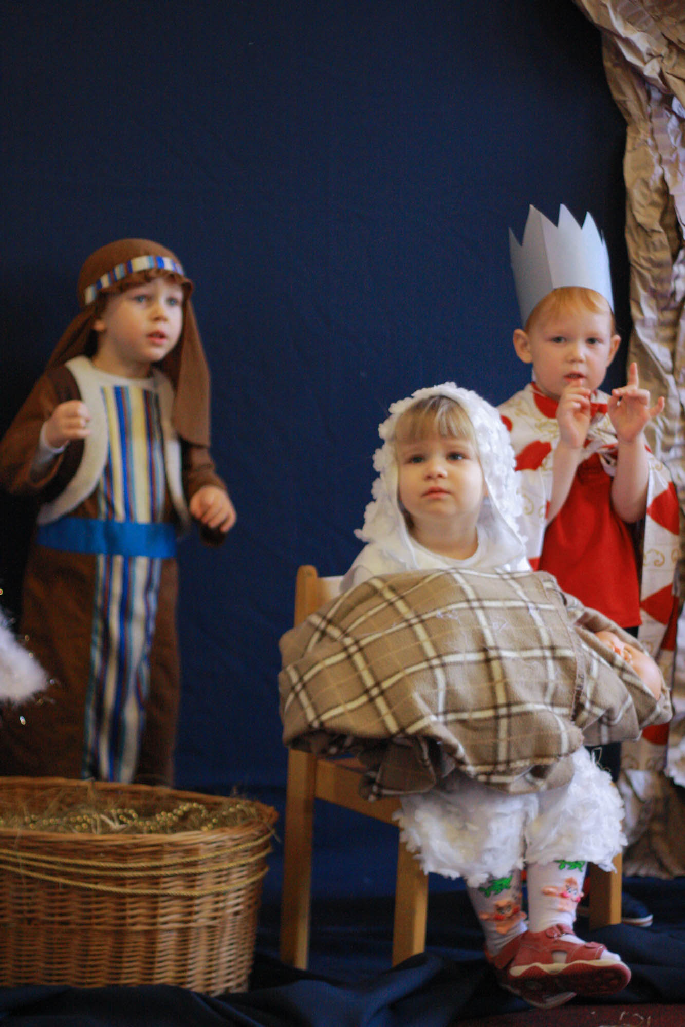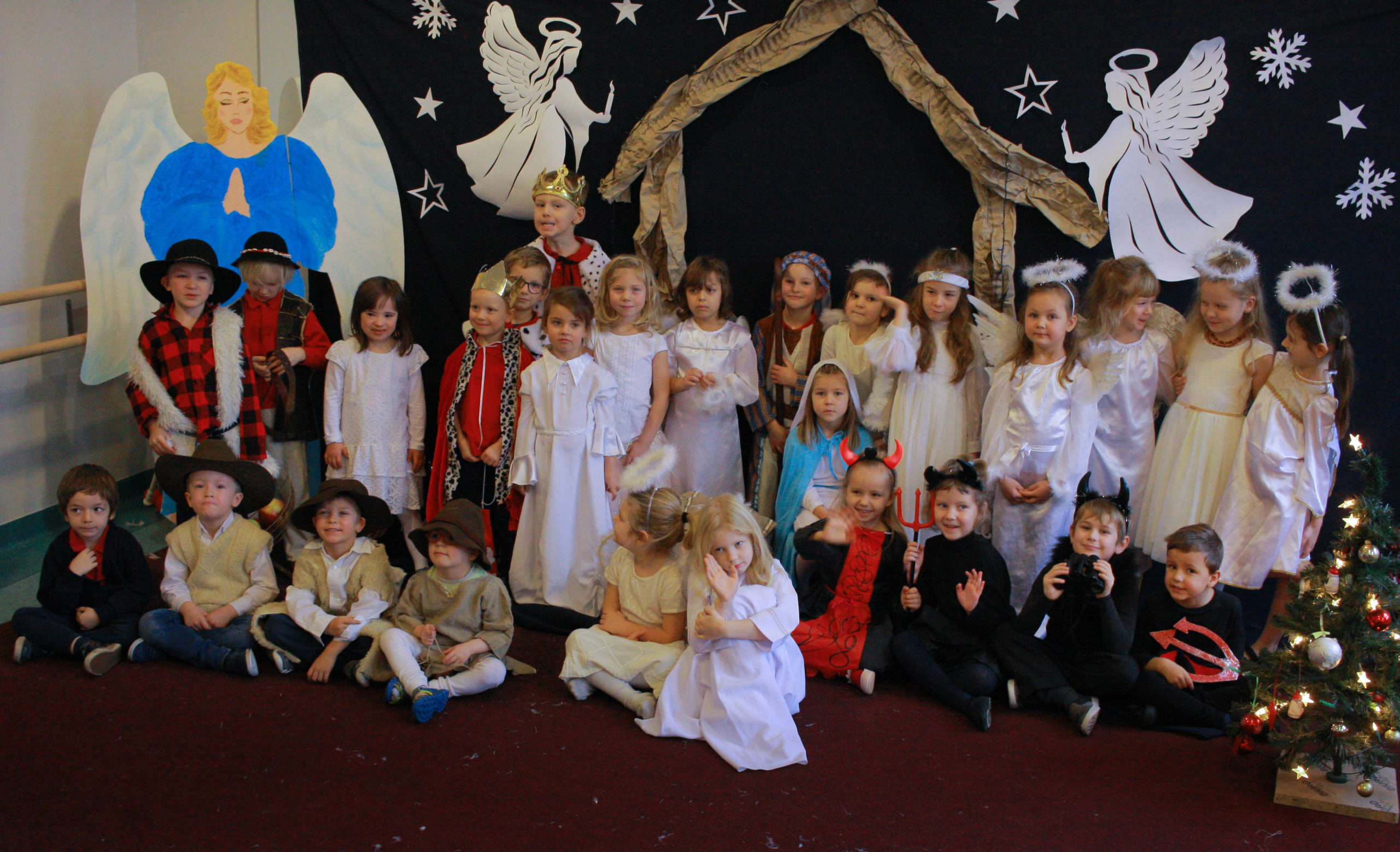 W piątek swoje pięć minut miały Muszelki. Mimo że grupa aktorów była zdziesiątkowana, przedstawienie było ujmujące. Józef i Maryja ze stoickim spokojem opiekowali się swoim małym Dzieciątkiem, najmłodszy przedstawiciel Trzech Króli (był tylko jeden, ale za to jaki!) bezbłędnie wyrecytował swoją kwestię, pastuszkowie złożyli pokłon, a chór – a właściwie chórek – anielski uświetnił to wszystko swoim śpiewem i obecnością ? Na koniec, pobrzękując janczarkami i podrygując zaśpiewały kolędę. Rozbrajające!