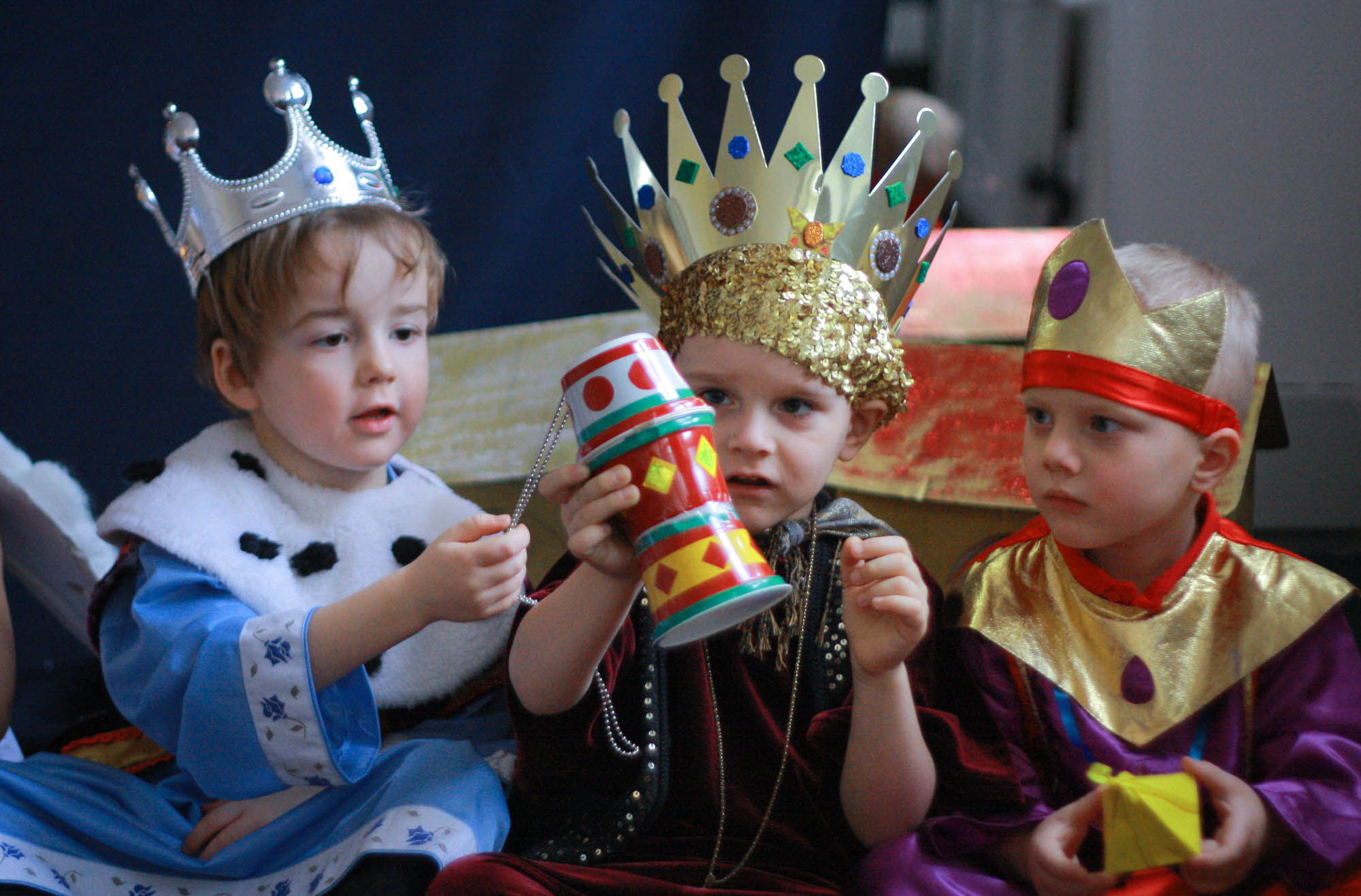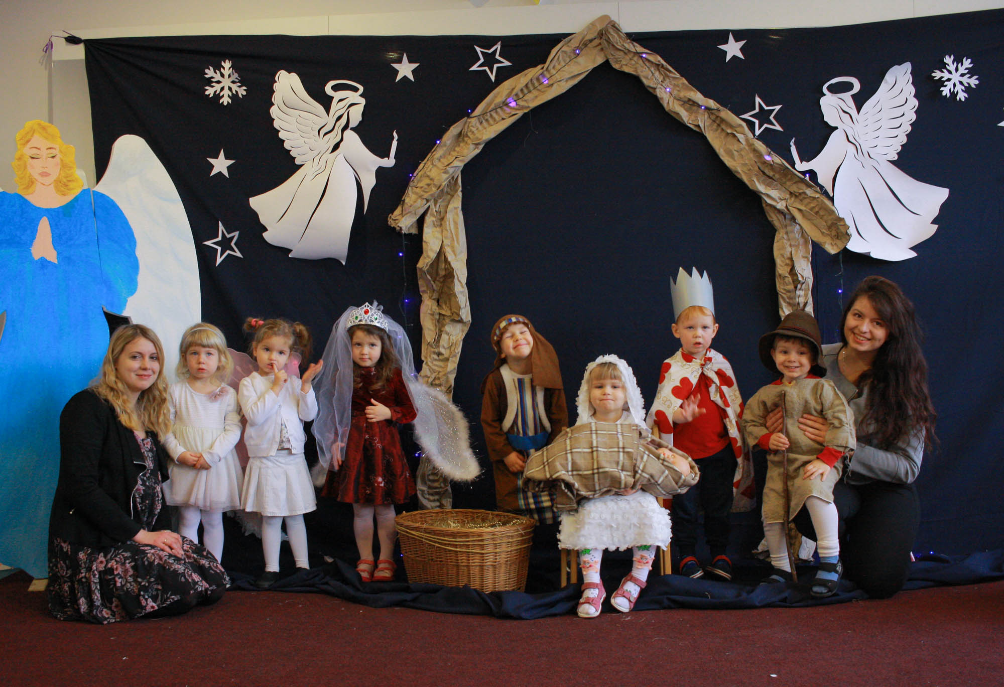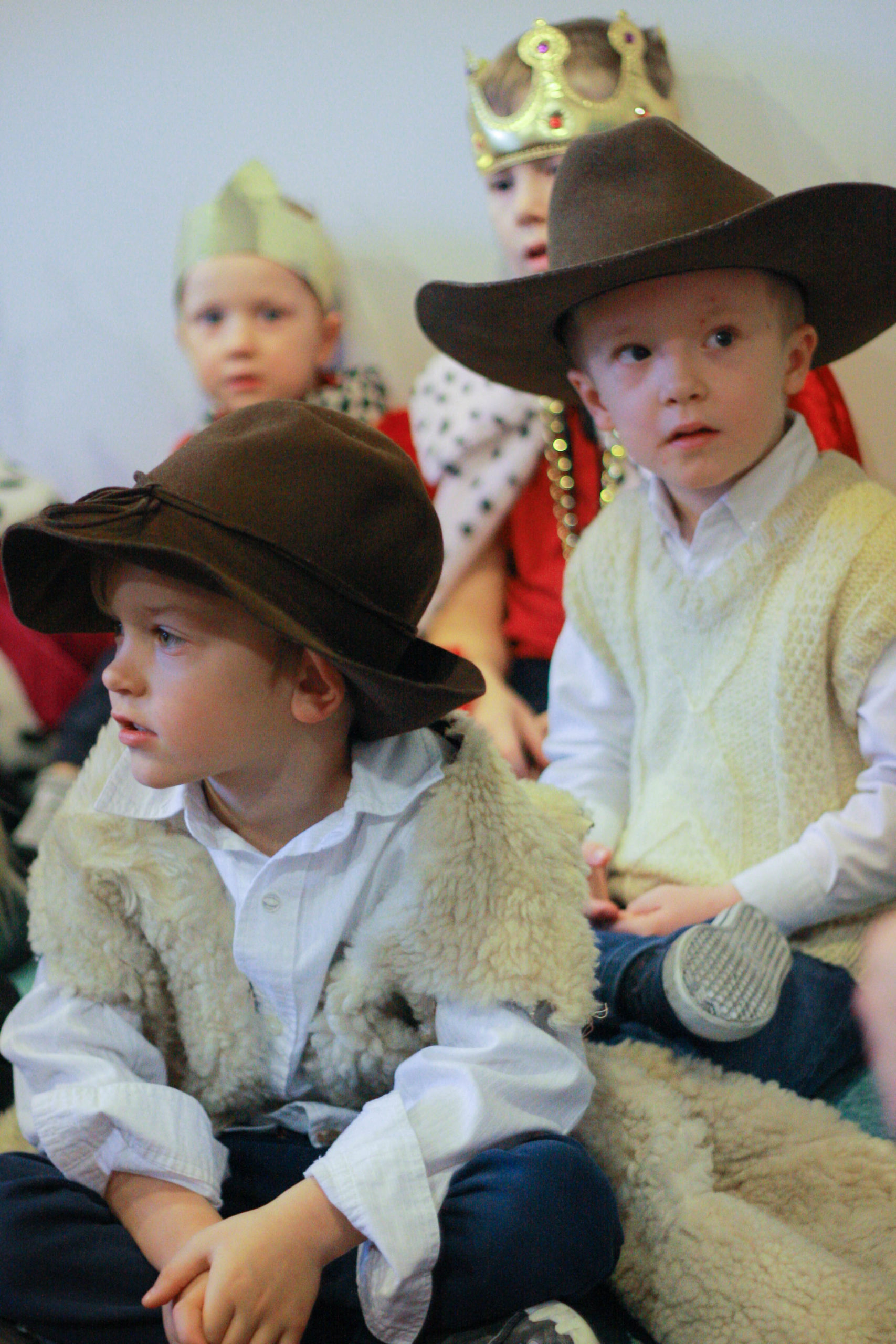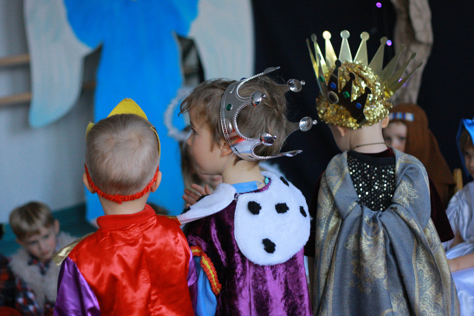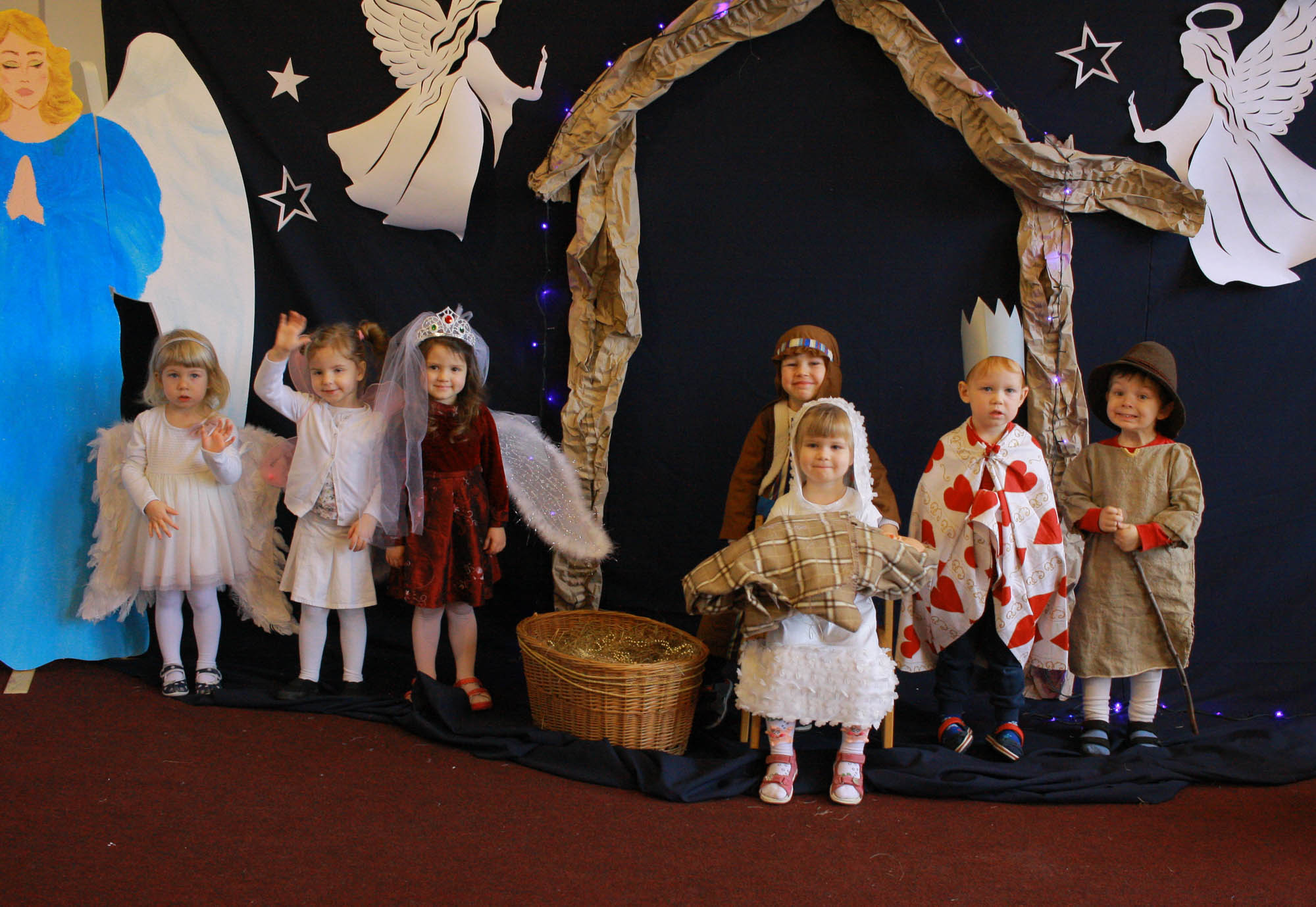 Jako ostatnie występowały Delfinki. To było dopiero coś! Trzej Królowie już w garderobie byli bardzo podekscytowani opowiadając o swoich drogocennych skarbach (słyszałam coś złotym wisiorze ze smokiem!), koronach i darach dla nowonarodzonego. Maryja tuląca Jezuska była zamyślona i tajemniczo uśmiechnięta, Józef – „pożyczony” z grupy Muszelek – znakomicie odnalazł się na gościnnych występach w starszej grupie (naturalny talent!).