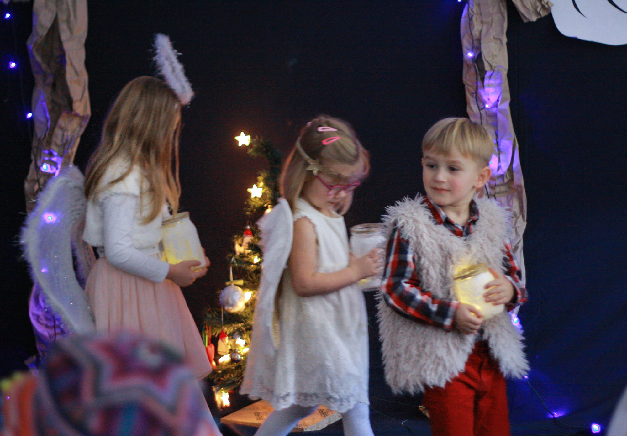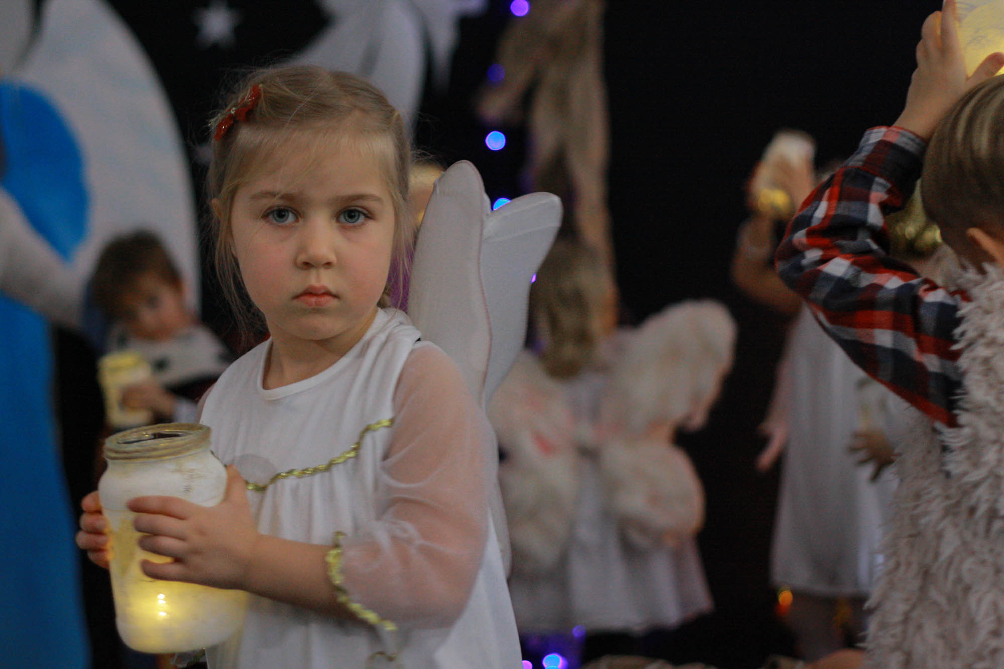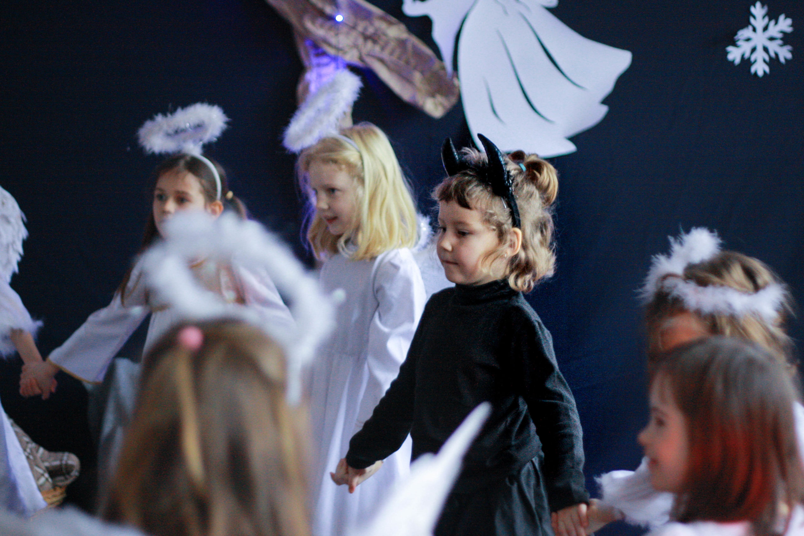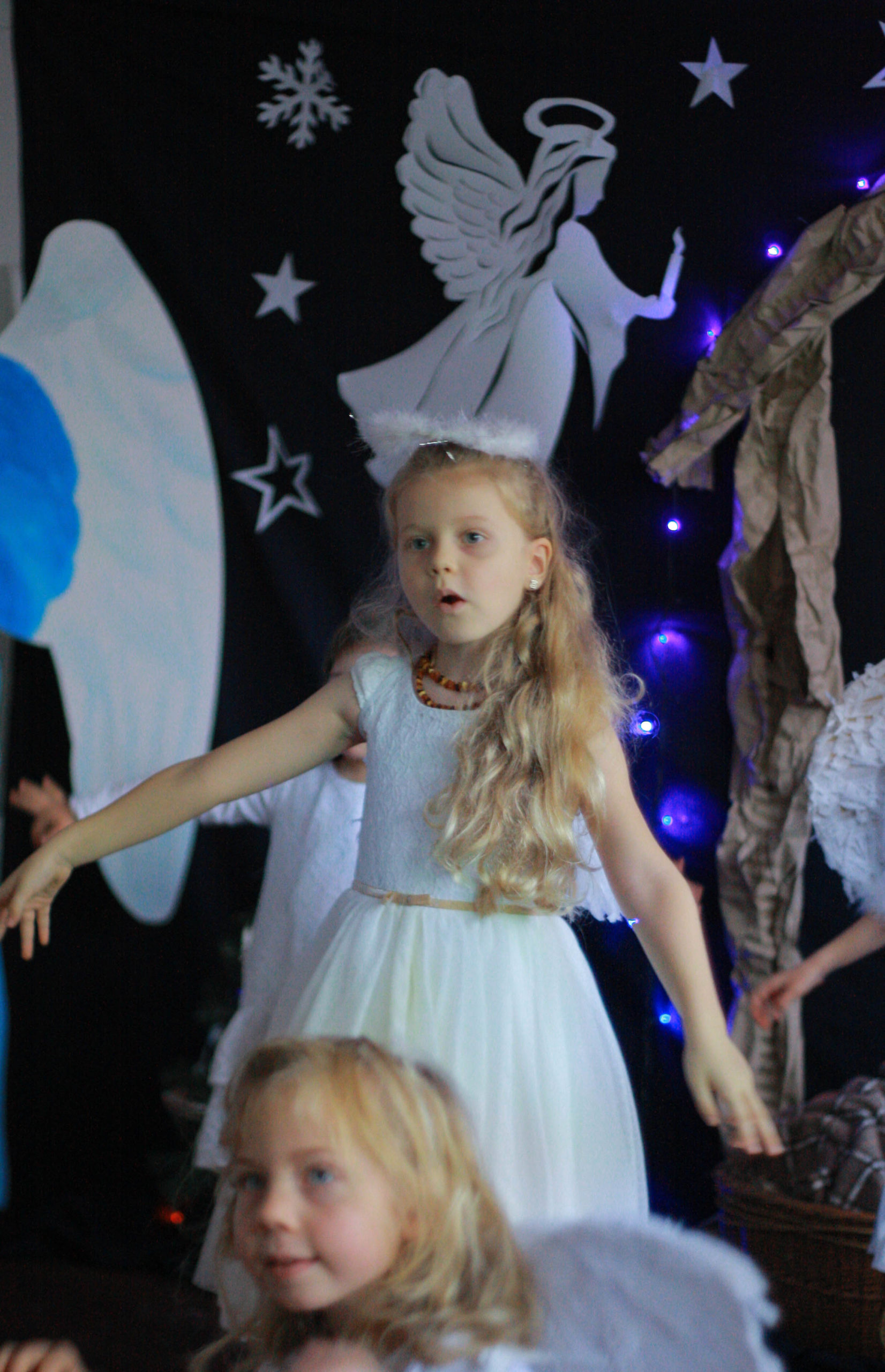 Prawdziwy hit był dopiero na koniec: taniec z lampionami w rytm dostojnego „Noel” był pięknym, poruszającym finałem całego spektaklu. Dzieci były ciche i skupione, szczerze mówiąc zrobiło się tak całkiem poważnie i wzruszająco. Brawo dla aktorów i dla Pań – również w anielskich kostiumach!
