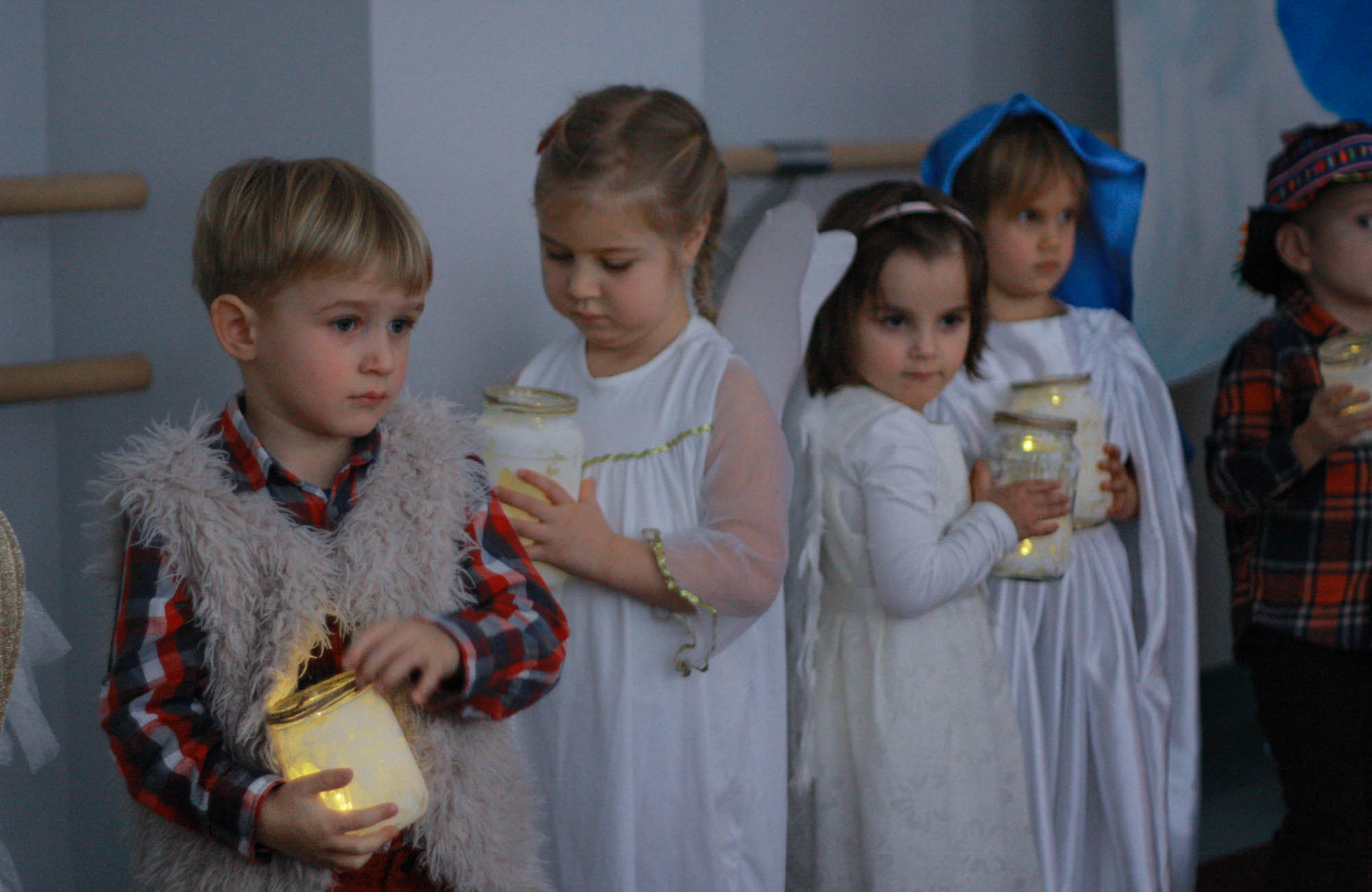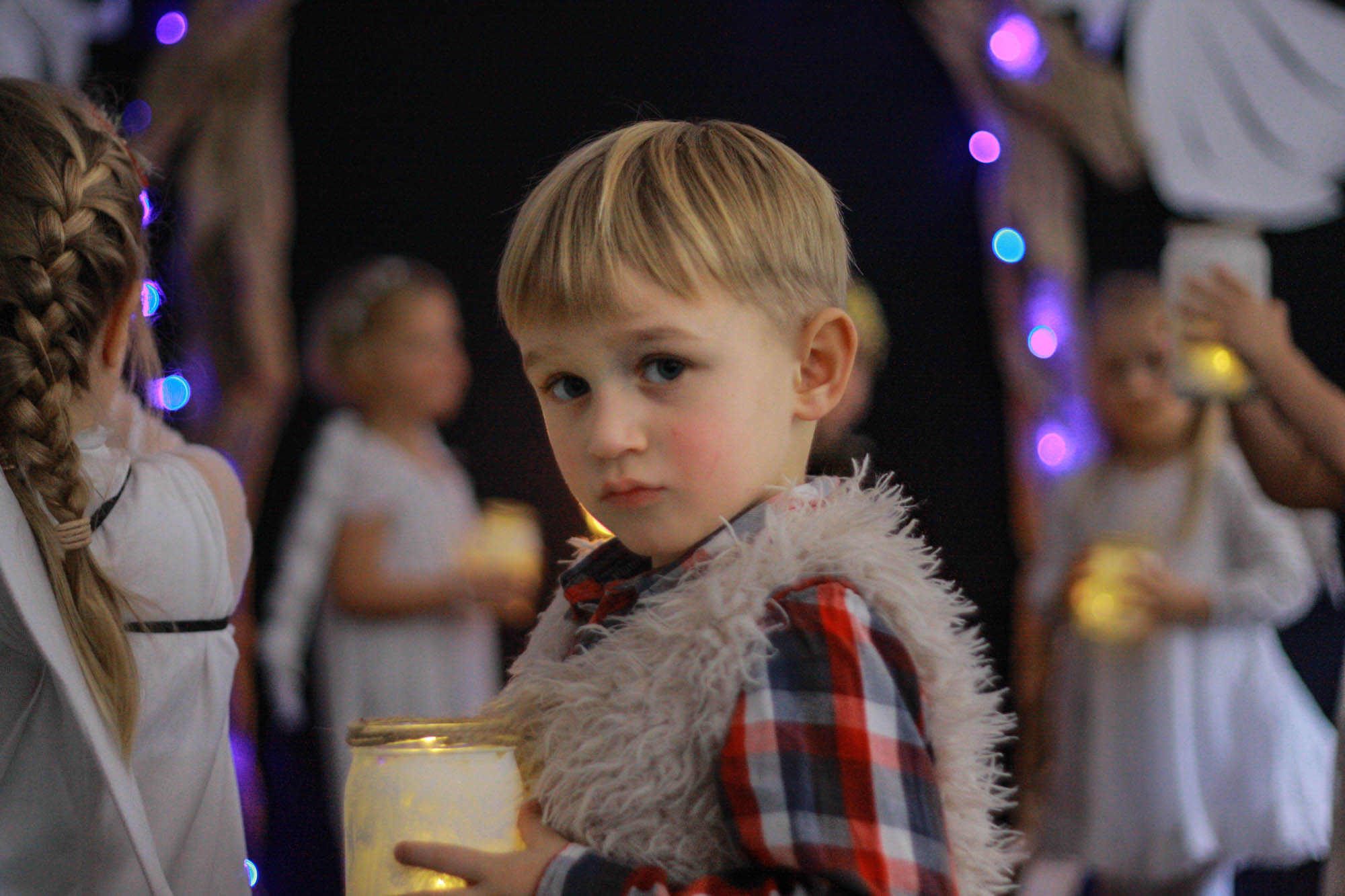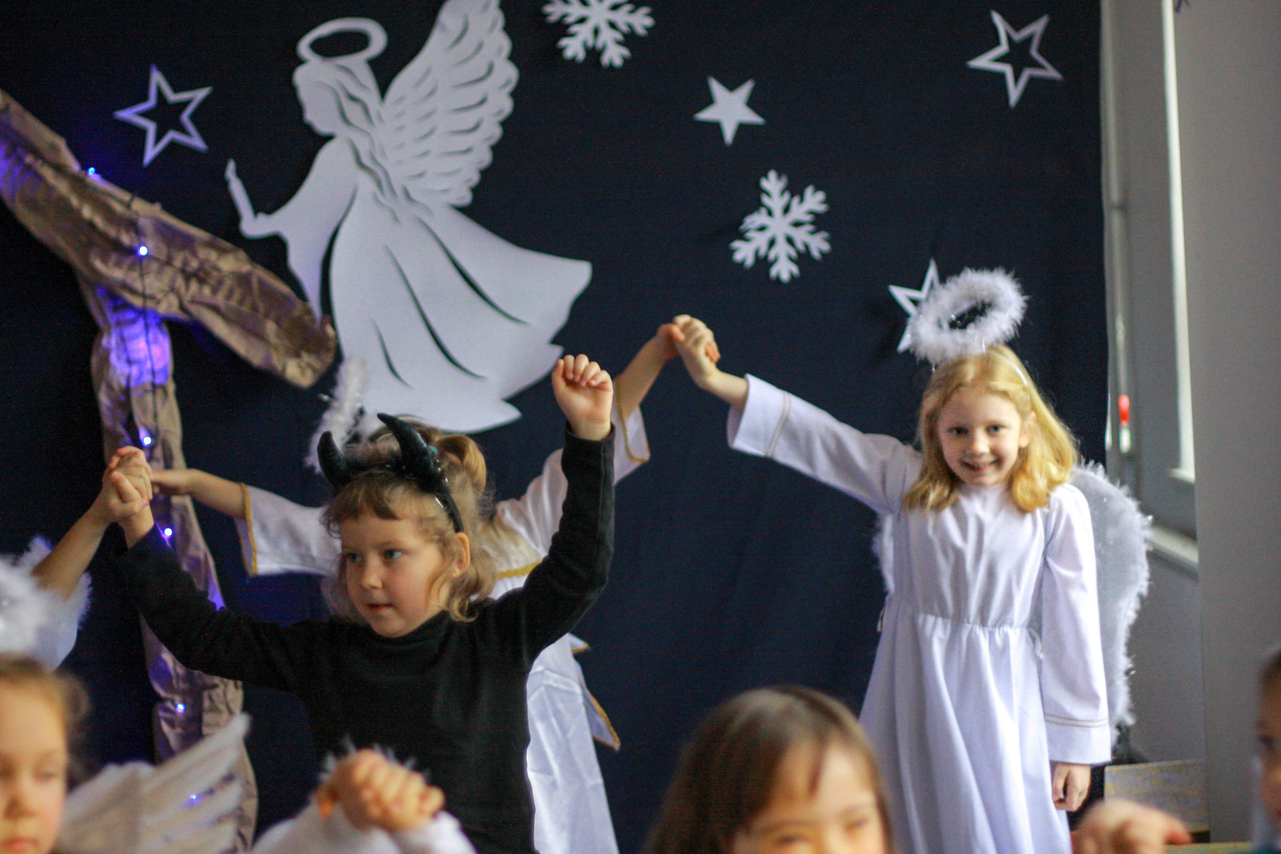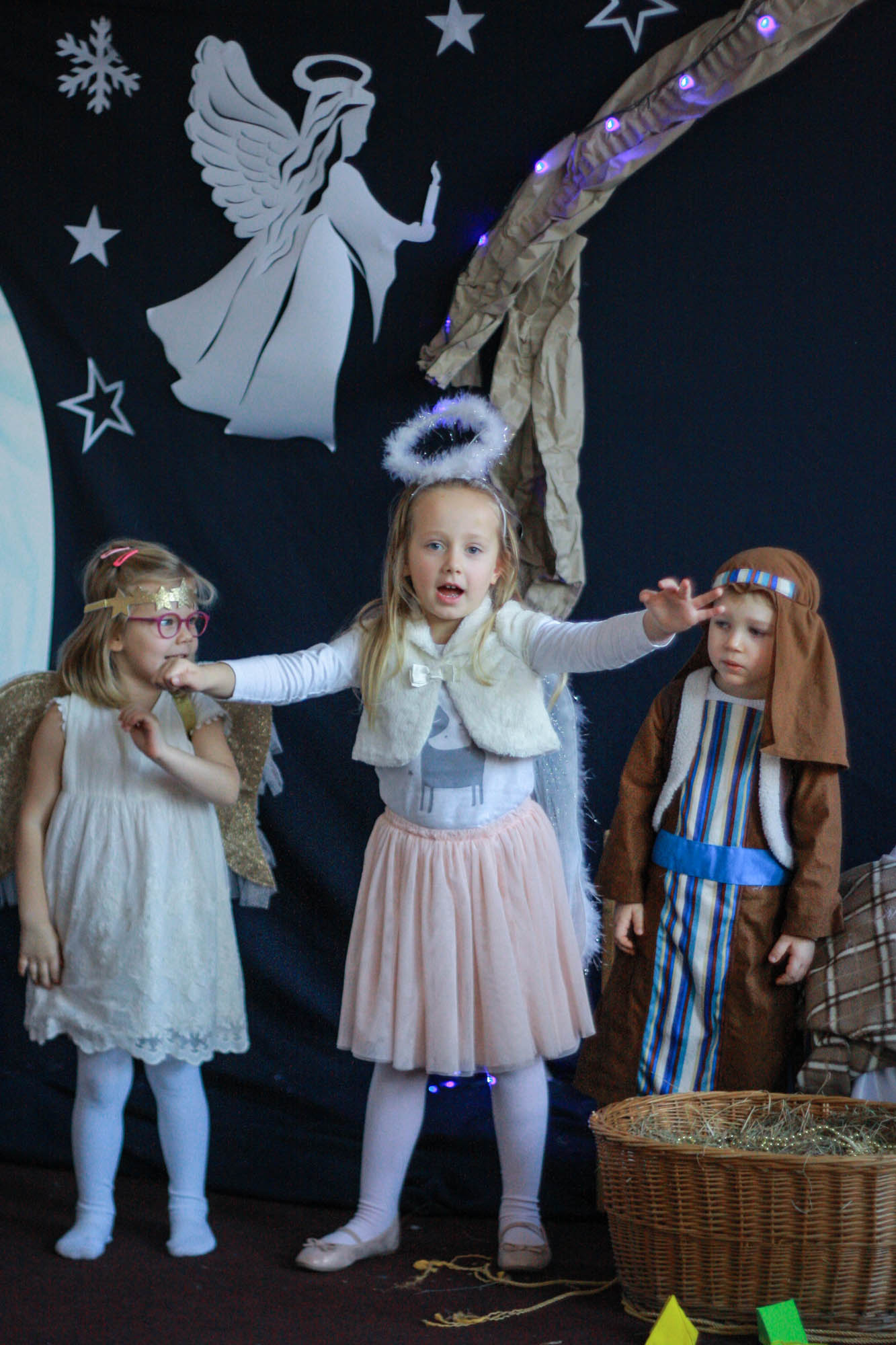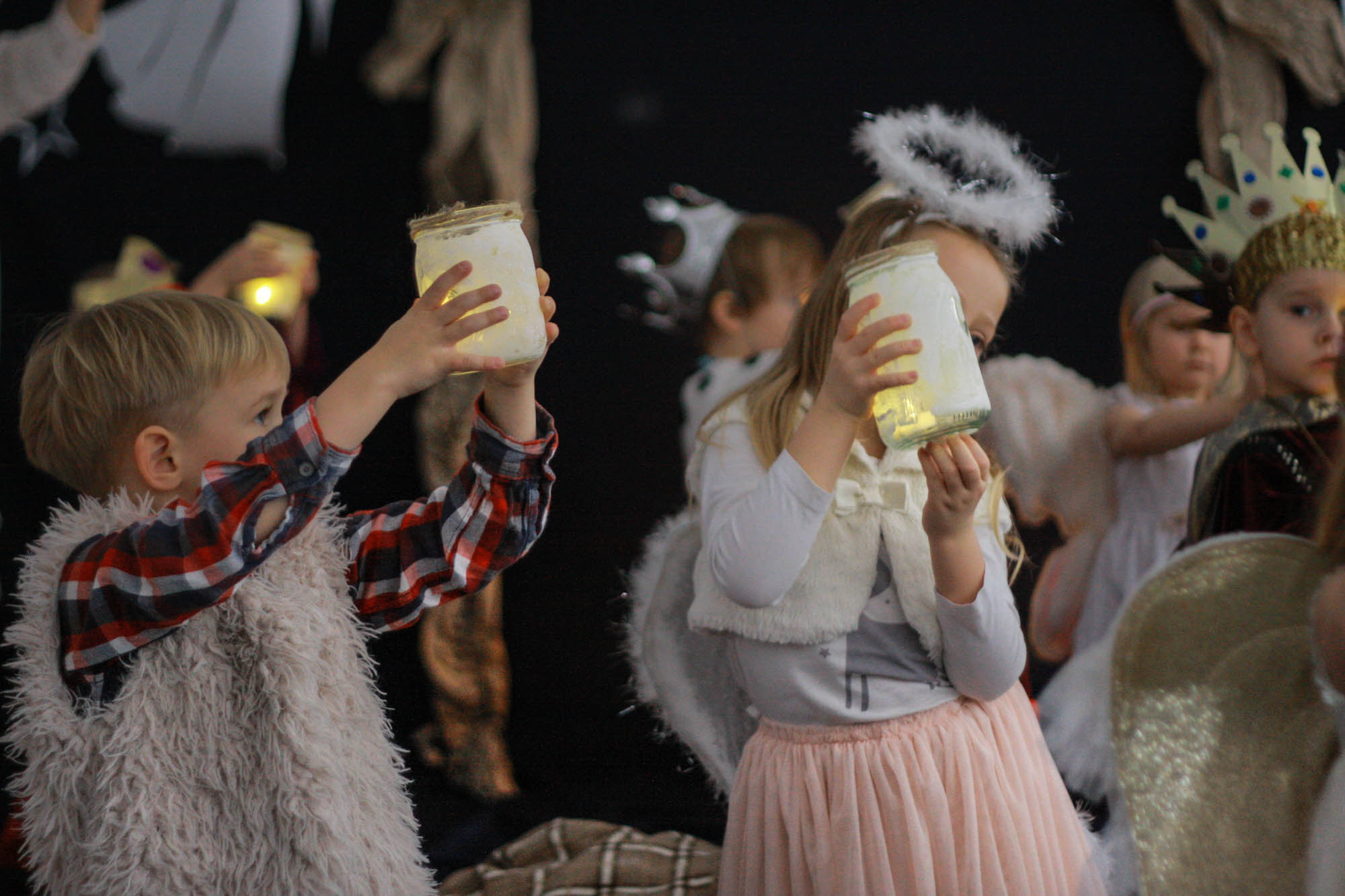 Prawdziwy hit był dopiero na koniec: taniec z lampionami w rytm dostojnego „Noel” był pięknym, poruszającym finałem całego spektaklu. Dzieci były ciche i skupione, szczerze mówiąc zrobiło się tak całkiem poważnie i wzruszająco. Brawo dla aktorów i dla Pań – również w anielskich kostiumach!