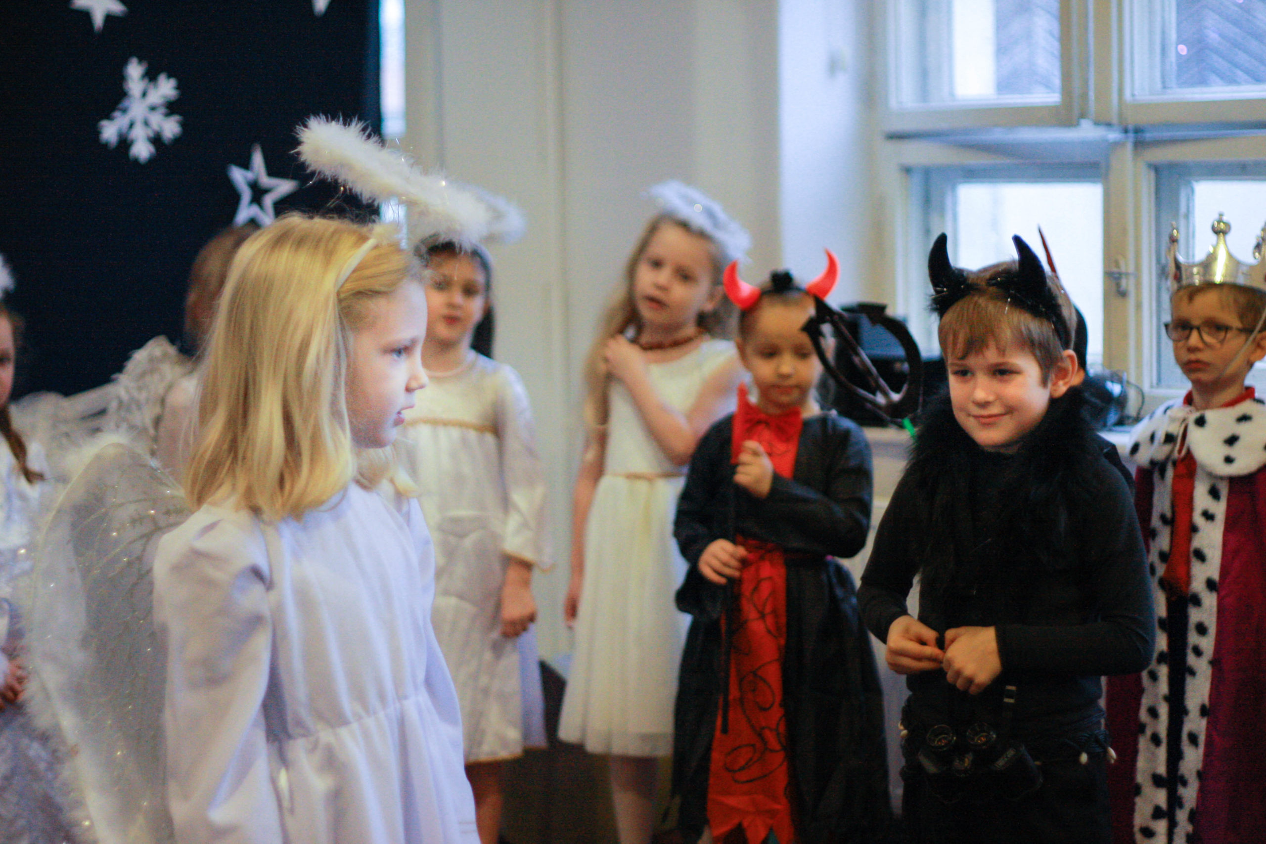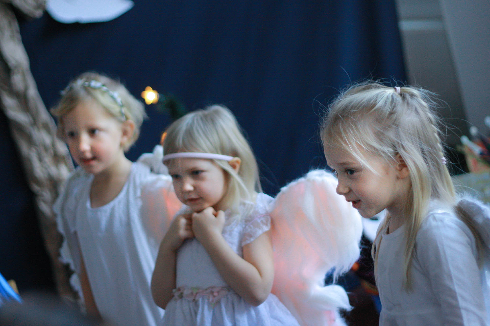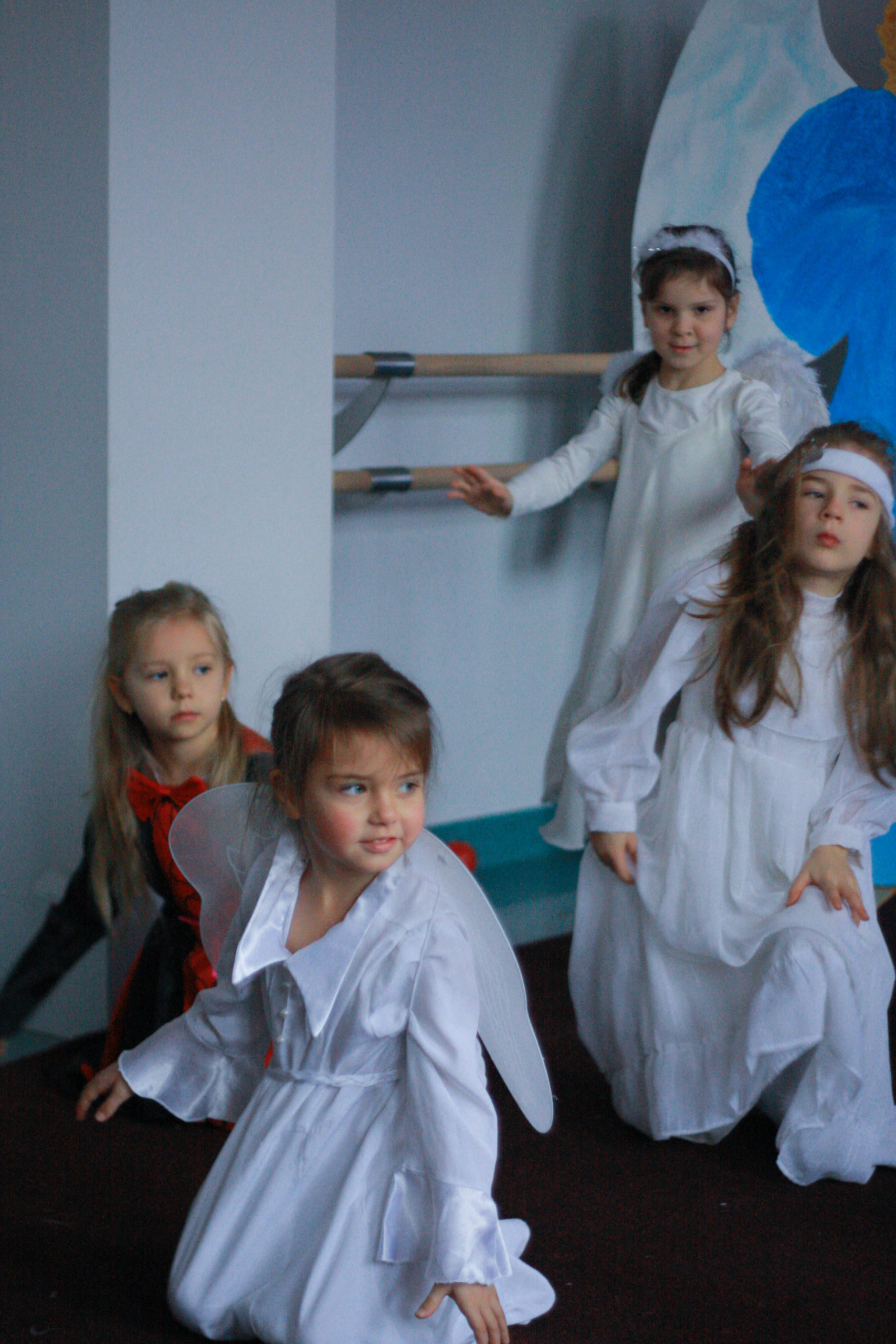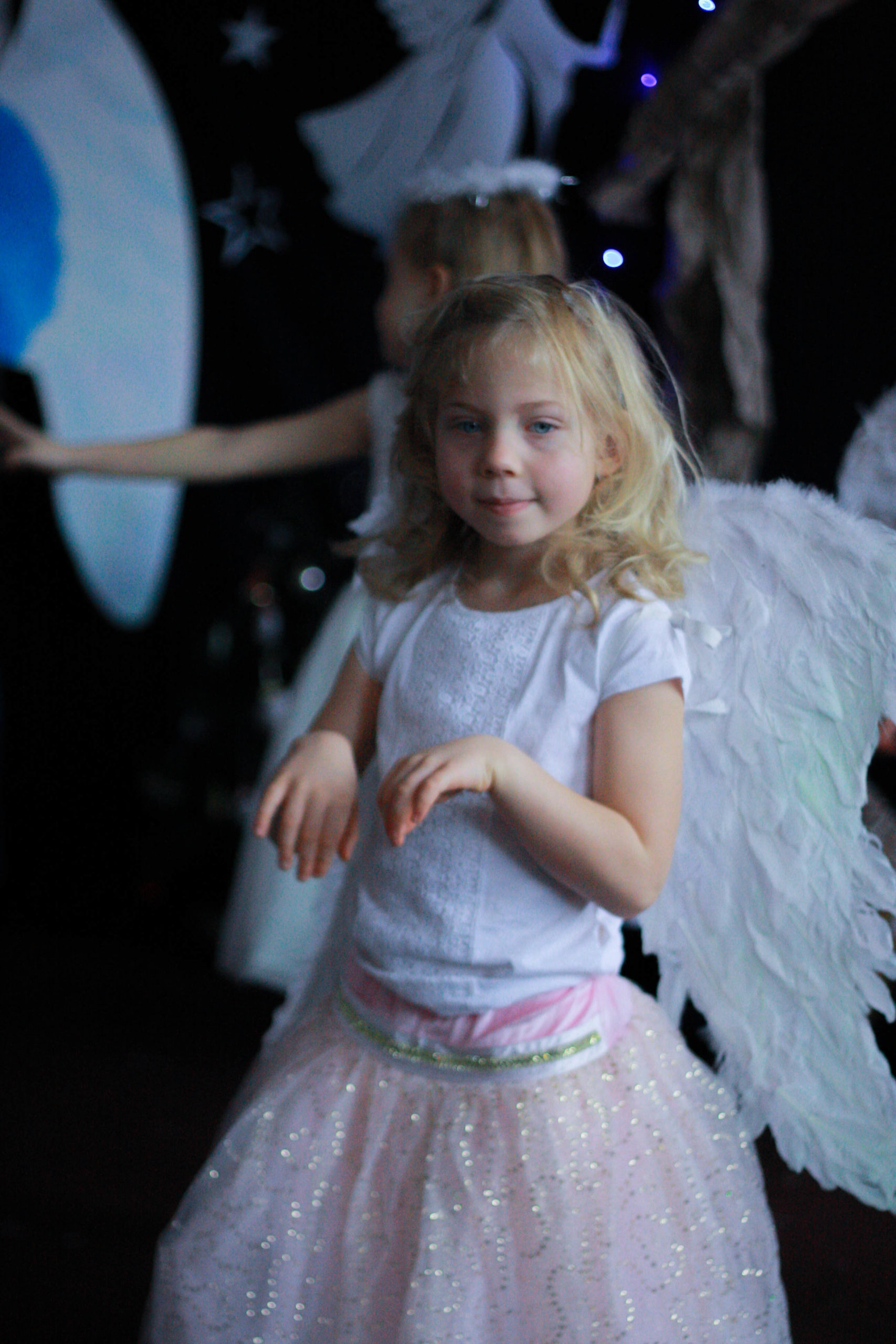 Prawdziwy hit był dopiero na koniec: taniec z lampionami w rytm dostojnego „Noel” był pięknym, poruszającym finałem całego spektaklu. Dzieci były ciche i skupione, szczerze mówiąc zrobiło się tak całkiem poważnie i wzruszająco. Brawo dla aktorów i dla Pań – również w anielskich kostiumach!