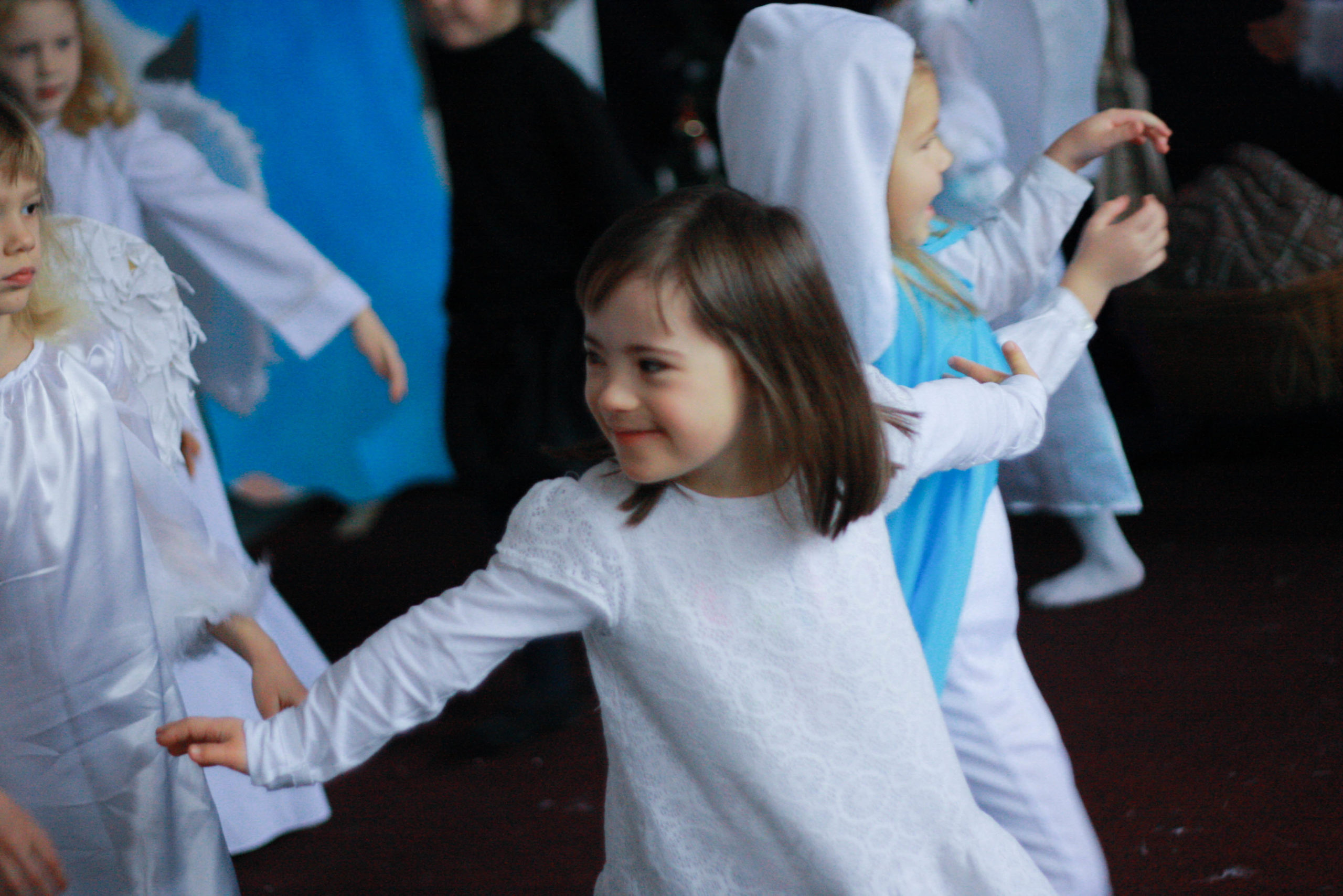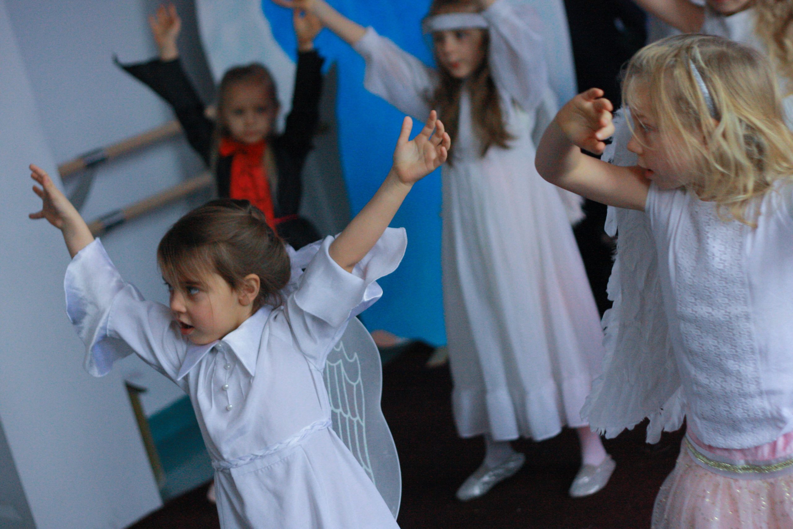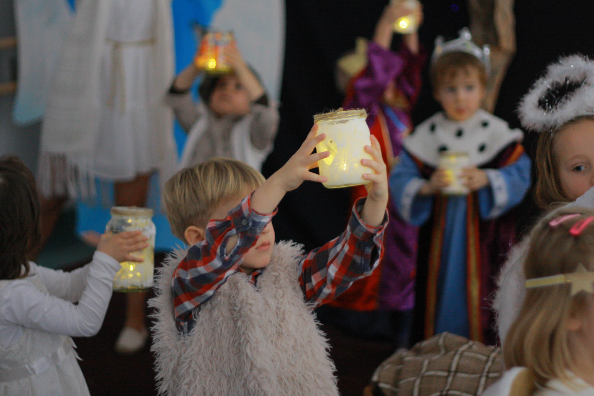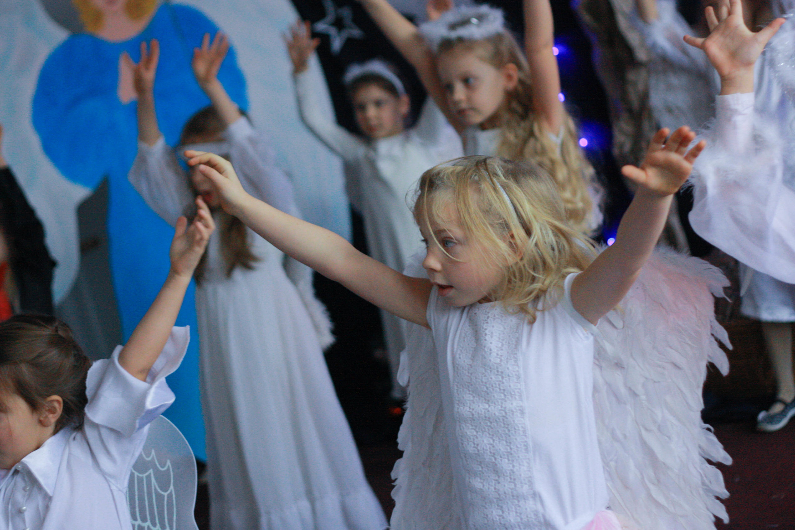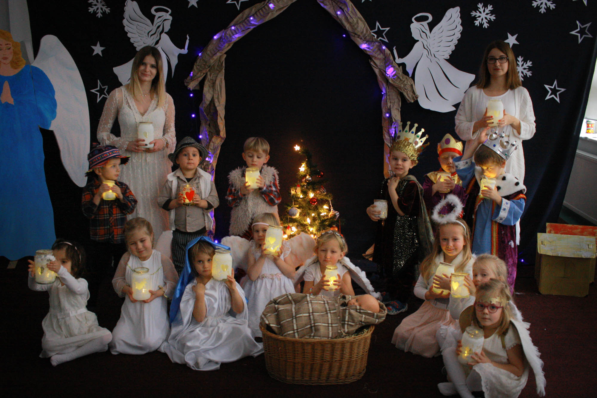 Prawdziwy hit był dopiero na koniec: taniec z lampionami w rytm dostojnego „Noel” był pięknym, poruszającym finałem całego spektaklu. Dzieci były ciche i skupione, szczerze mówiąc zrobiło się tak całkiem poważnie i wzruszająco. Brawo dla aktorów i dla Pań – również w anielskich kostiumach!