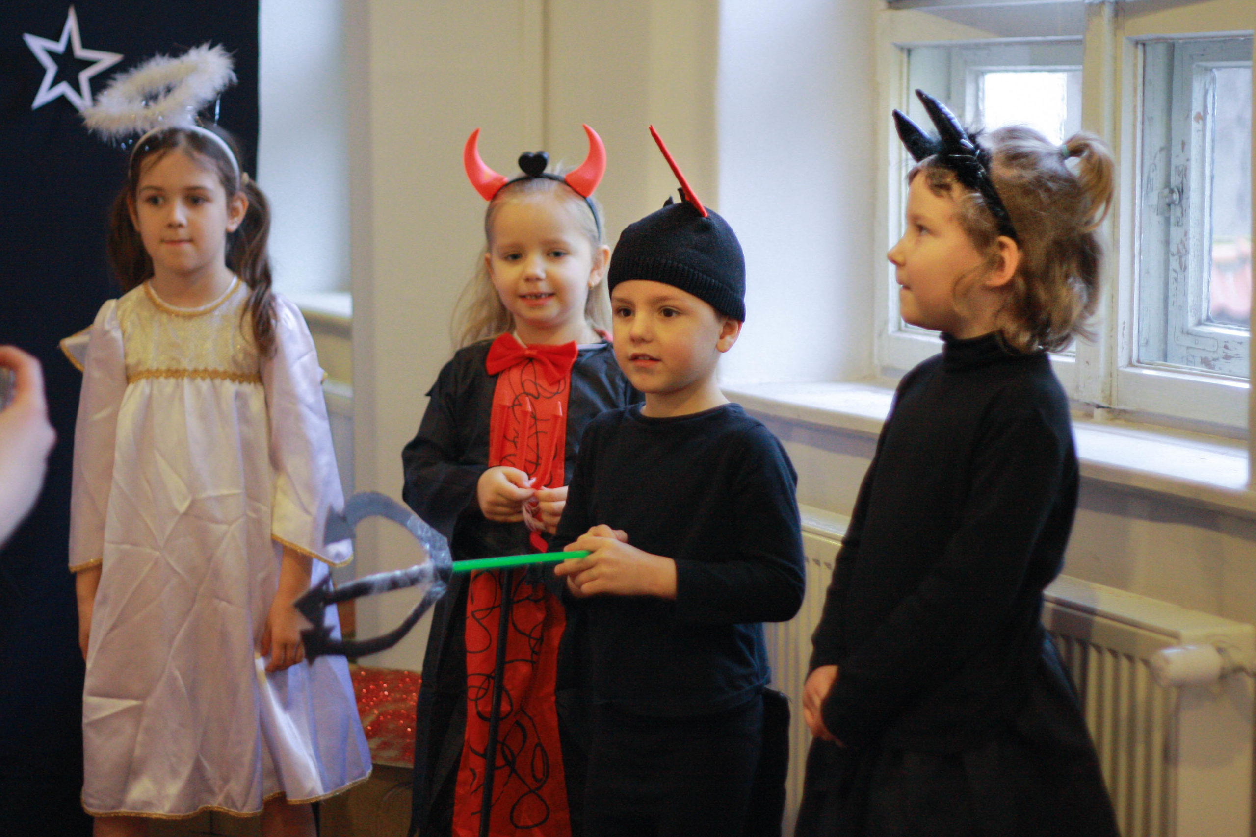 W czwartek grupa Bursztynków i Koników Morskich przedstawiała nowoczesną w formie choć klasyczną w treści historię walki dobra ze złem, poszukiwania schronienia Świętej rodziny, narodzin małego Jezusa, ogłoszenia dobrej nowiny pasterzom, podróży mędrców ze Wschodu oraz ostatecznej porażki diabła.